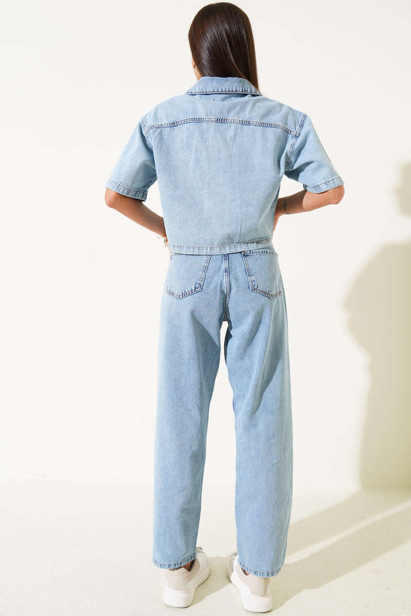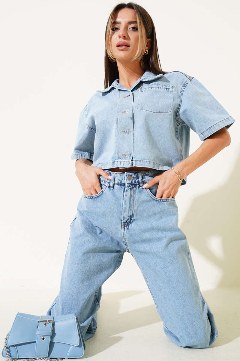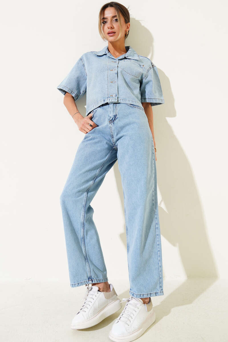 Çift Kemerli Geniş Paçalı Pantolon Lacivert