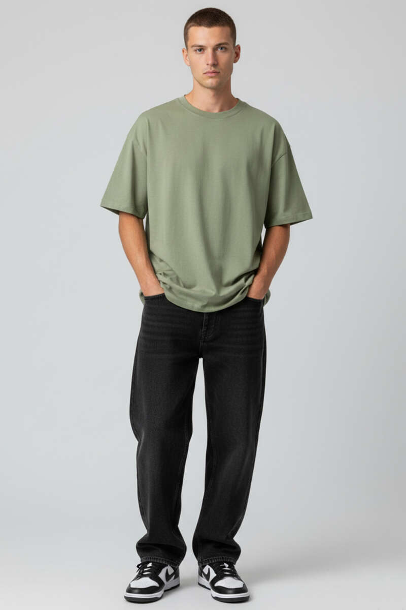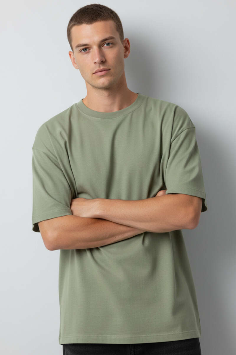 Kısa Kollu Oversize Erkek Tişört Çağla Yeşili