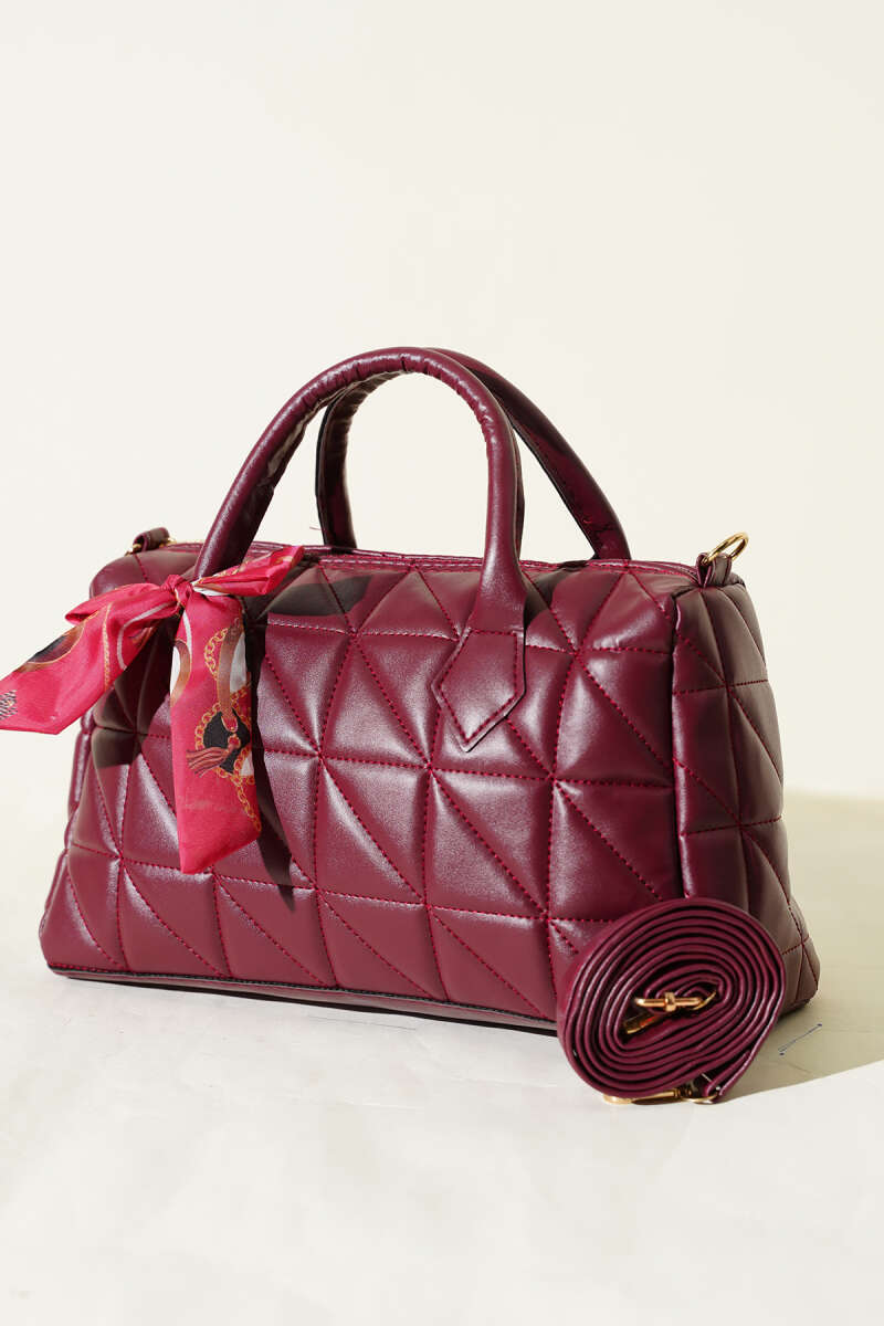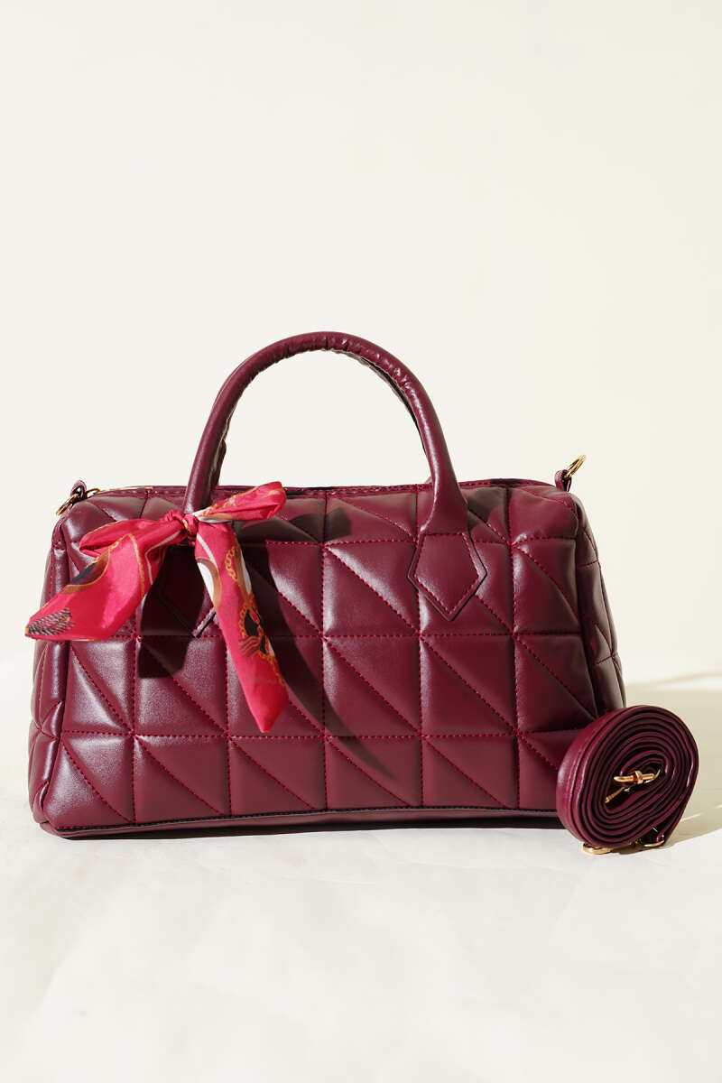 Kısa Kulplu Fularlı Kadın El Çantası Bordo