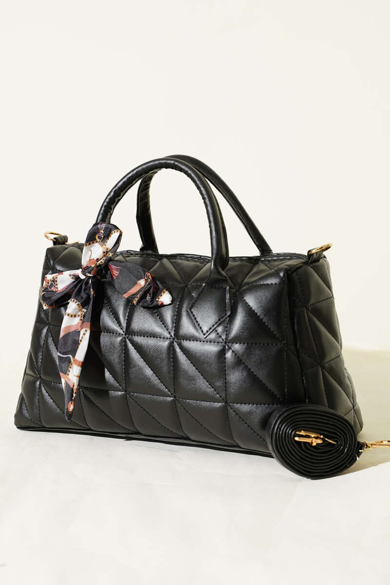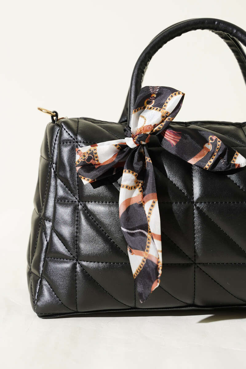 Kısa Kulplu Fularlı Kadın El Çantası Siyah