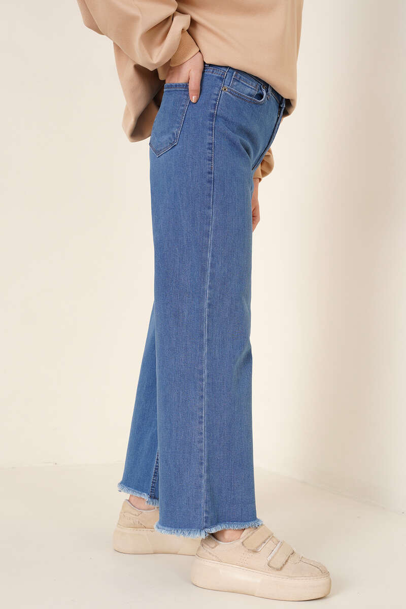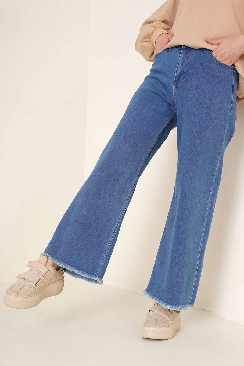 Yeni sezonda şık ve sade tasarımlı bol pantolon sizlerle. İki önde iki arkada cebi bulunmaktadır, ekstra olarak sağ cebin içinde küçük bir cep daha vardır. Geniş paçaları vardır. Paçalarında püskül detayı vardır.