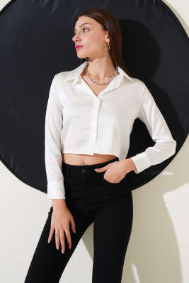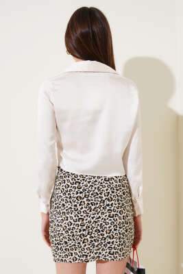 Bel Ve Kol Ucu Lastikli Saten Gömlek Ekru