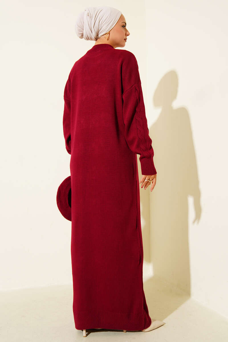 Balon Kol Triko Elbise Bordo