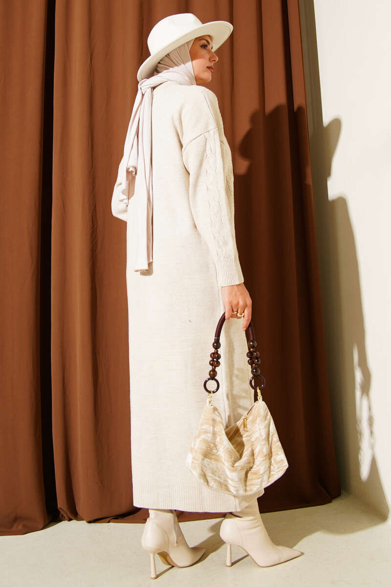 Kıvrım Örgülü Triko Elbise Yağ Yeşili