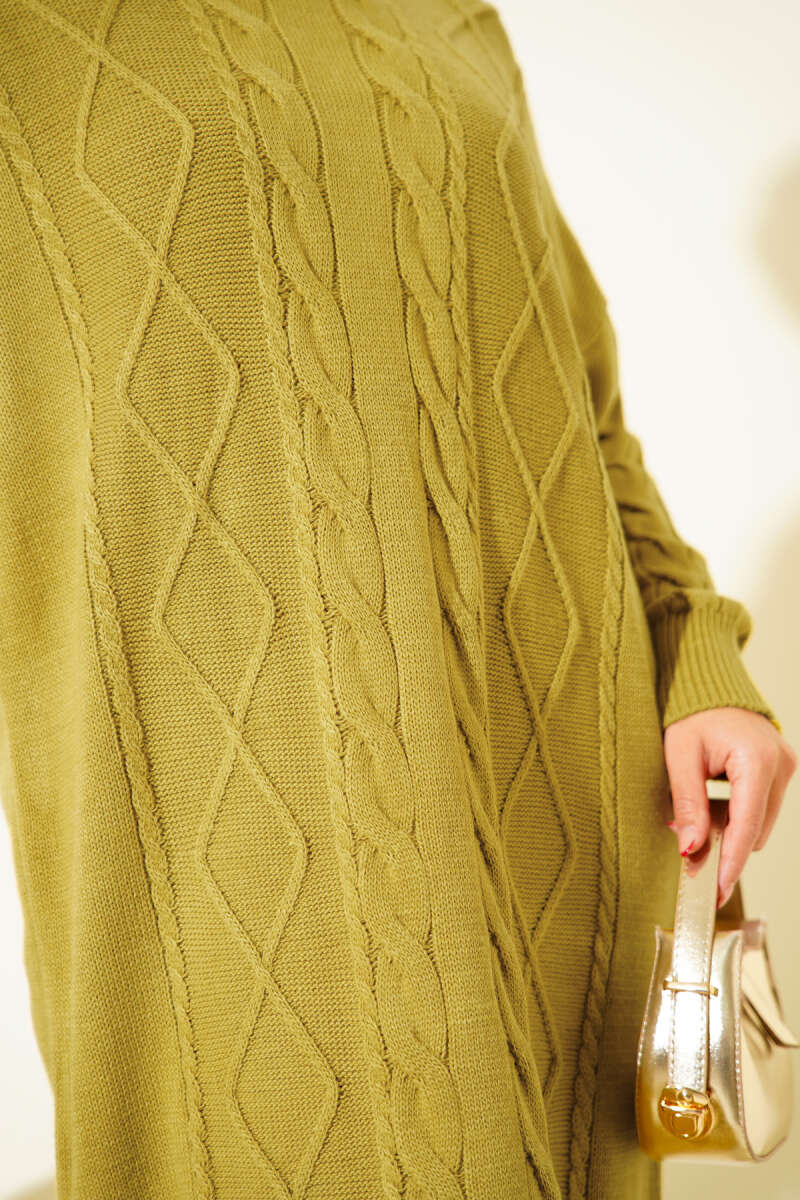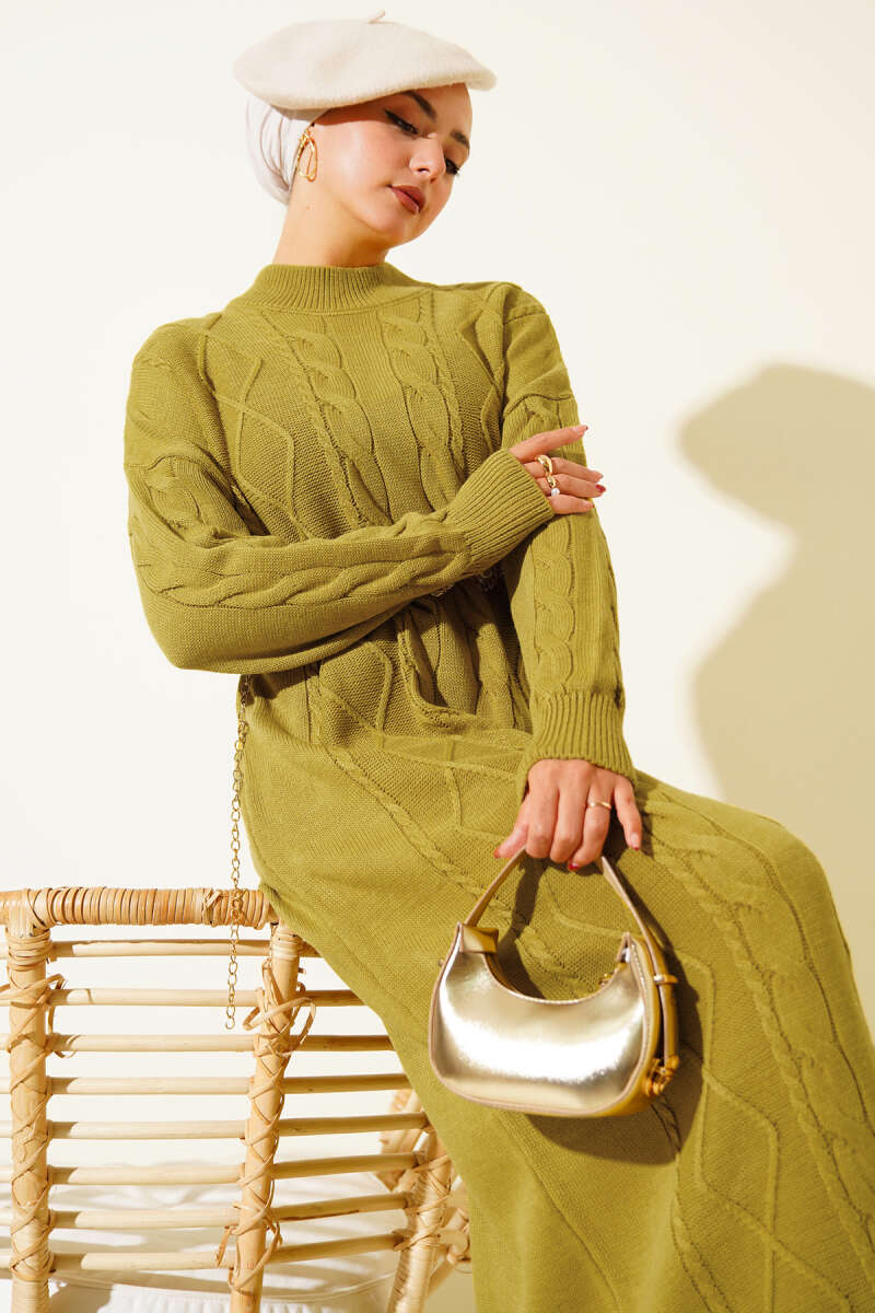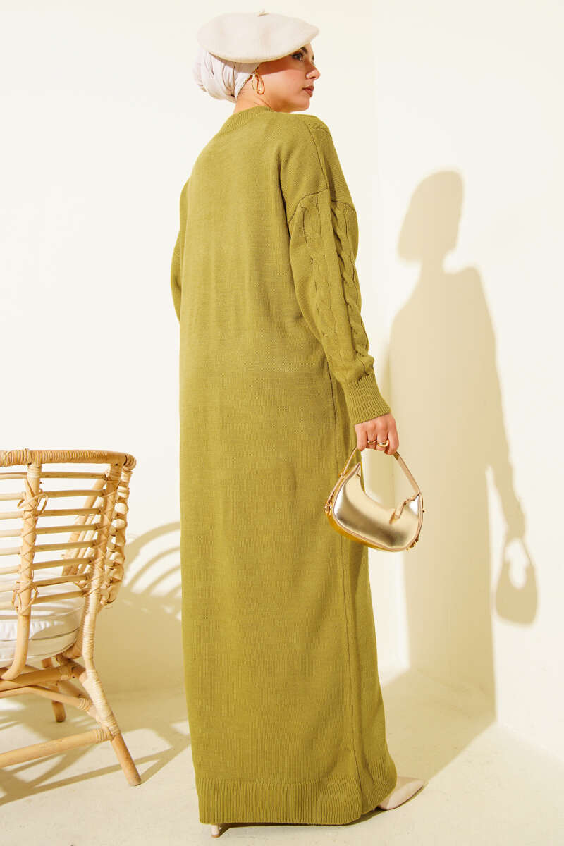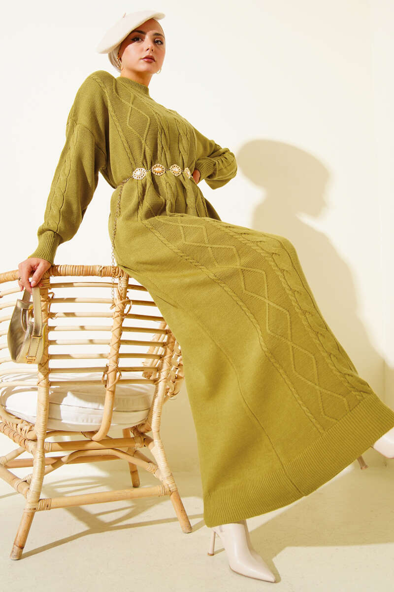 Loyşa İp Kuşaklı Duble Kol Elbise Haki