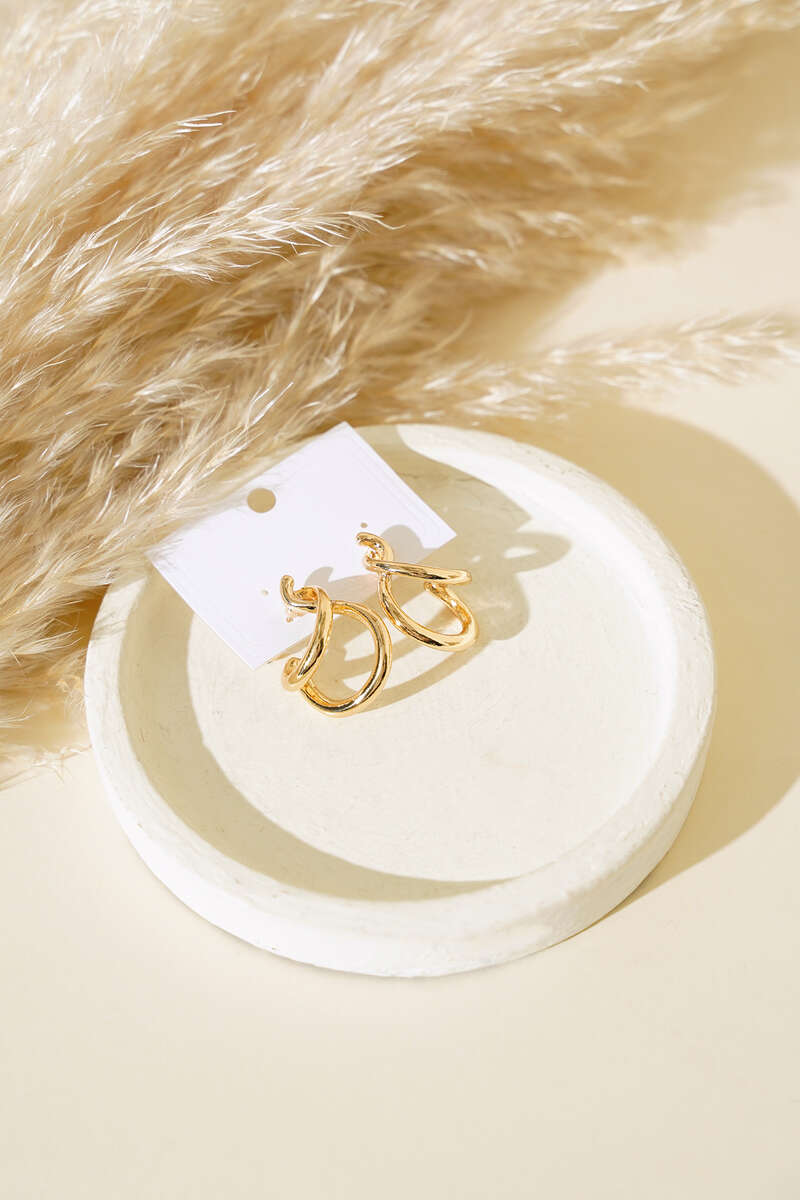 Çarpı Taşlı Kıkırdak Küpe Gold