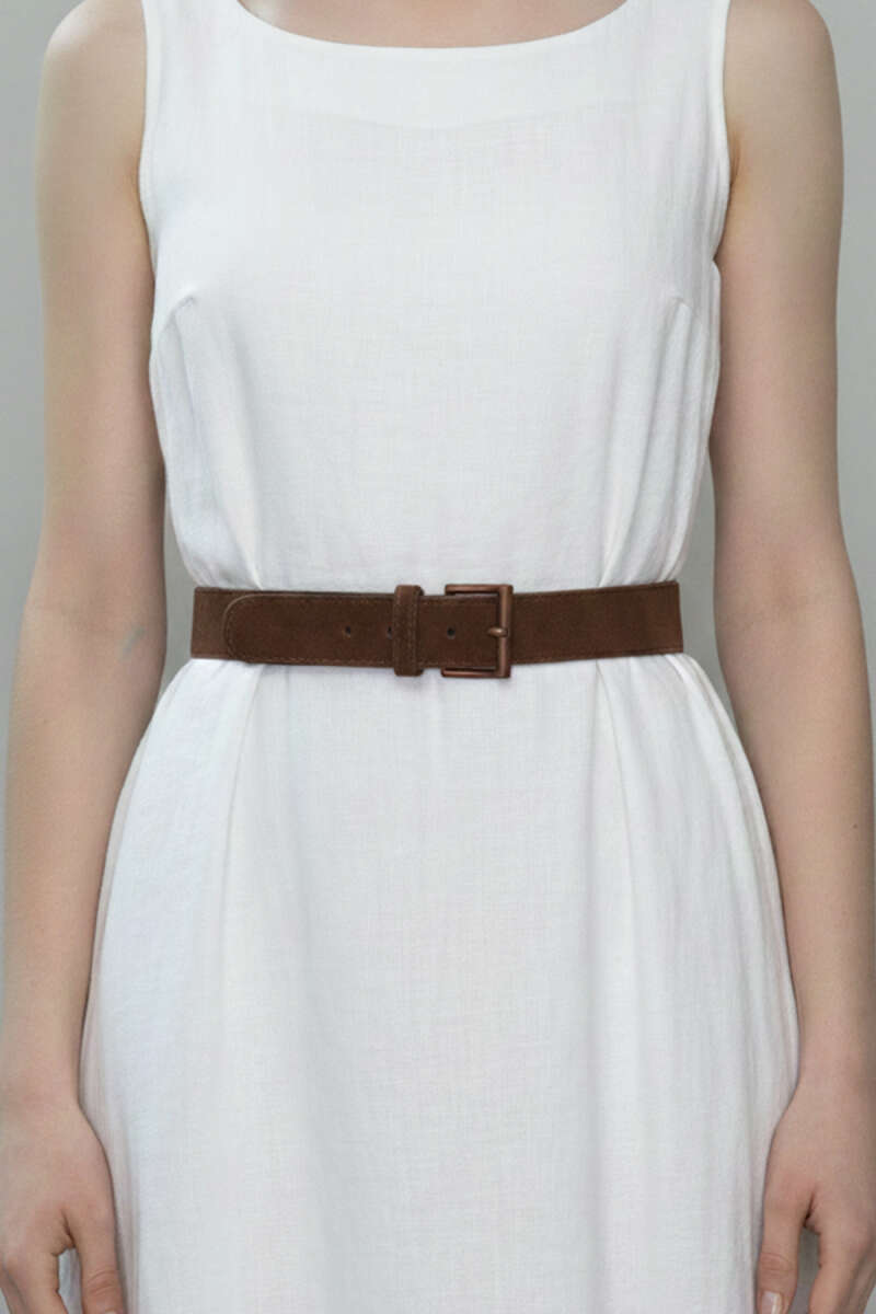 Tokalı Kalın Süet Kemer Kahve