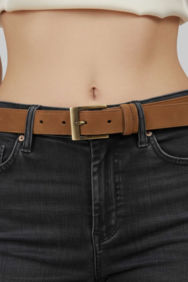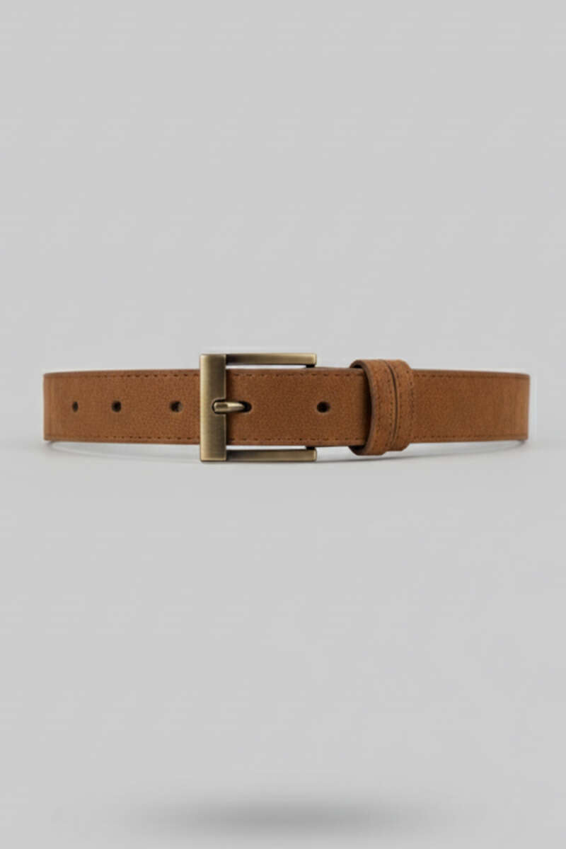 Bakır Görünüm Tokalı Kemer Taba Süet