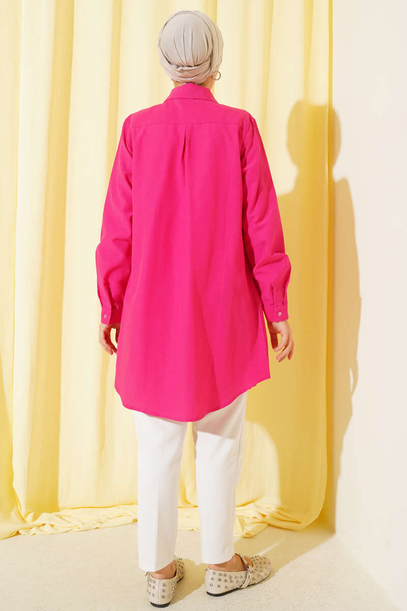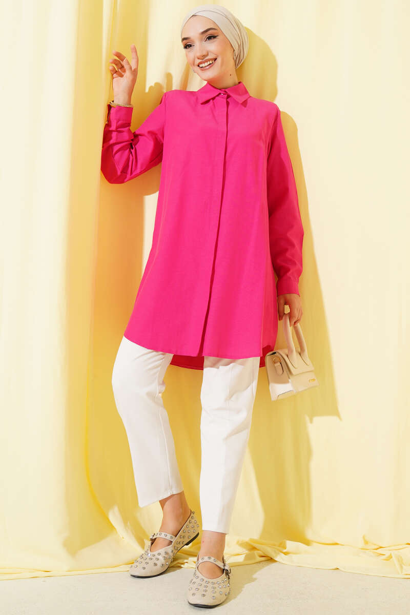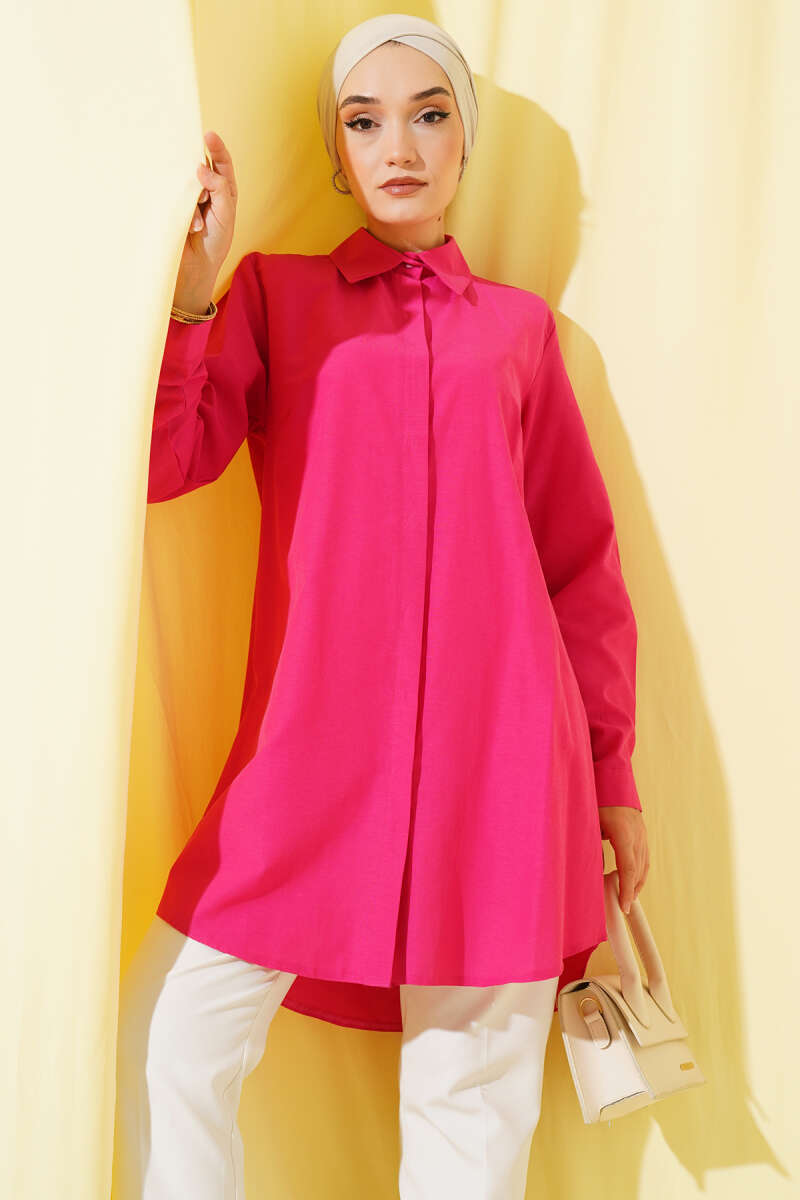Klasik Yakalı Oval Kesim Fuşya Gömlek