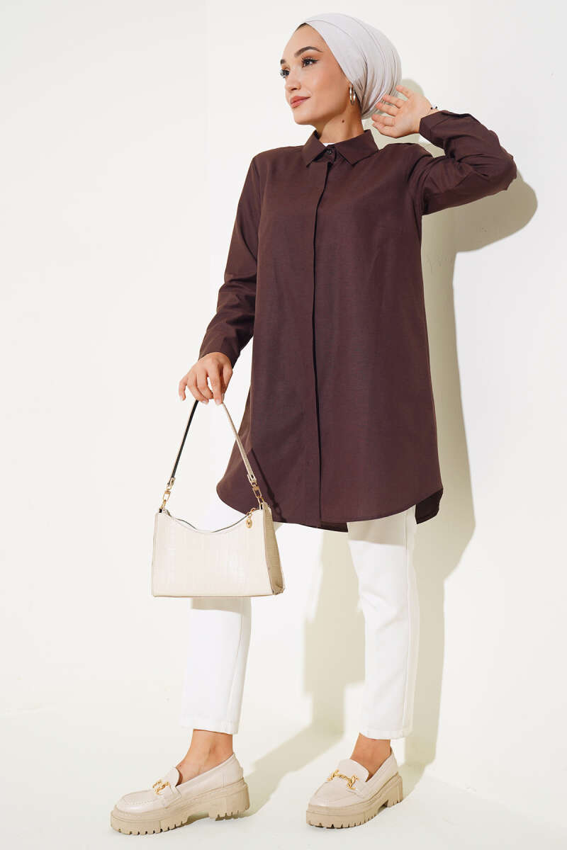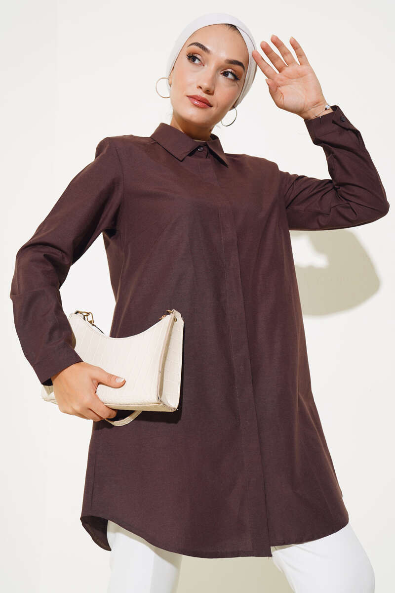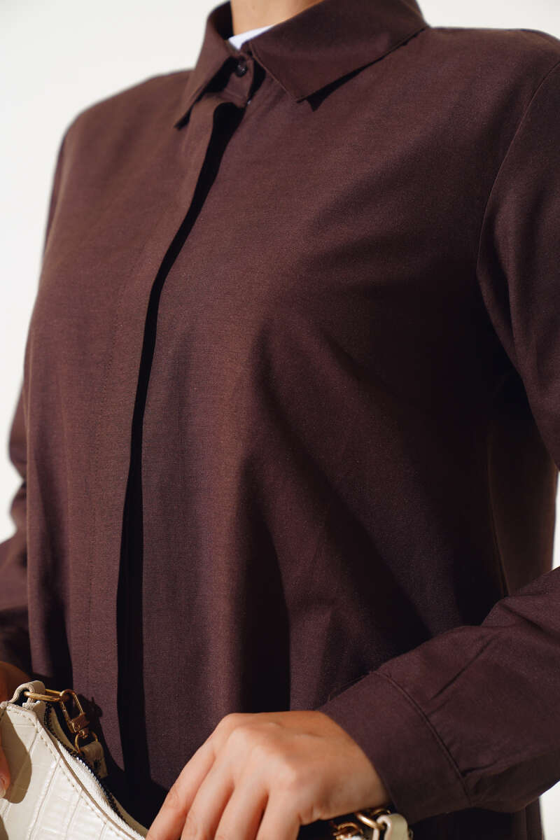 Klasik yakalı gömlek yeni sezon modeldir. Boydan aktif kullanmaya uygun gizli düğmelidir. Manşet kolludur. Etek ucu oval kesime sahiptir. Arkasında bir adet pilesi vardır. Geniş renk skalasıyla her zevke hitap edecek gömlek sizlerle...
