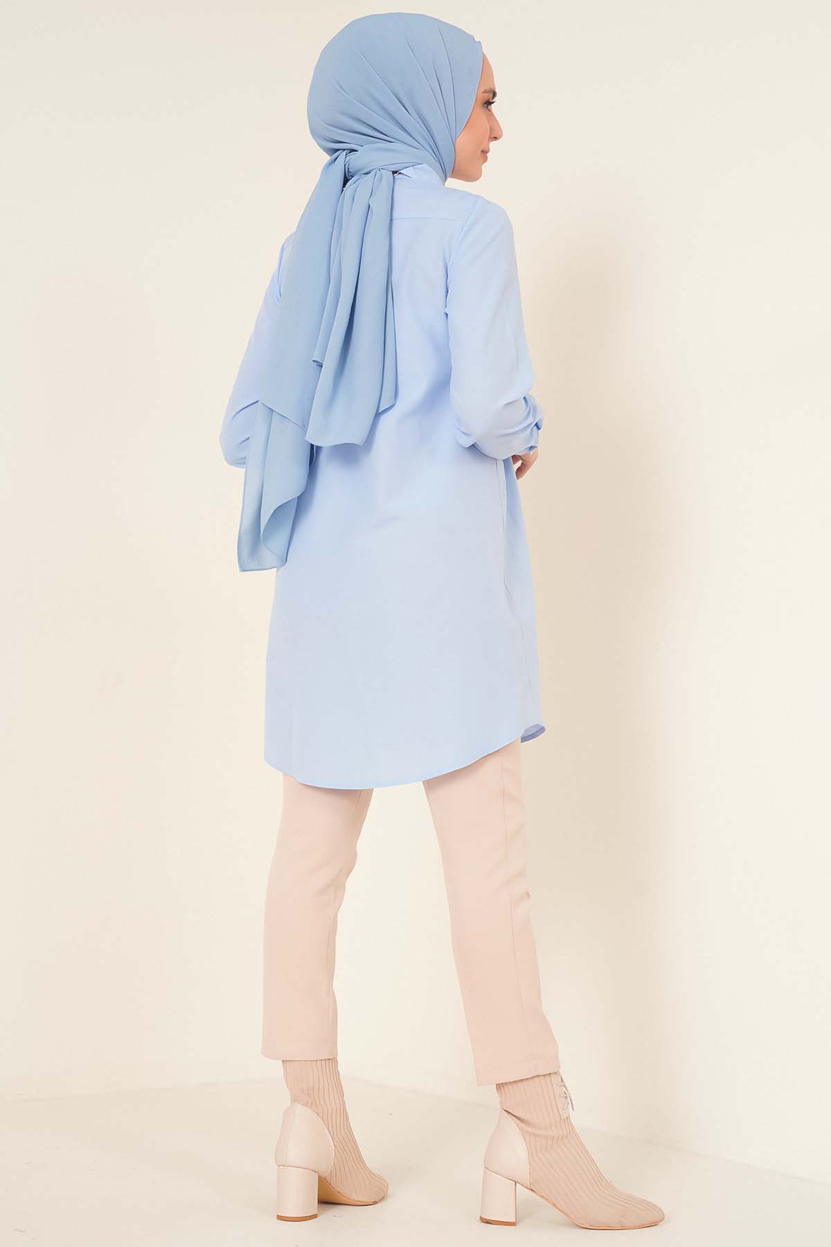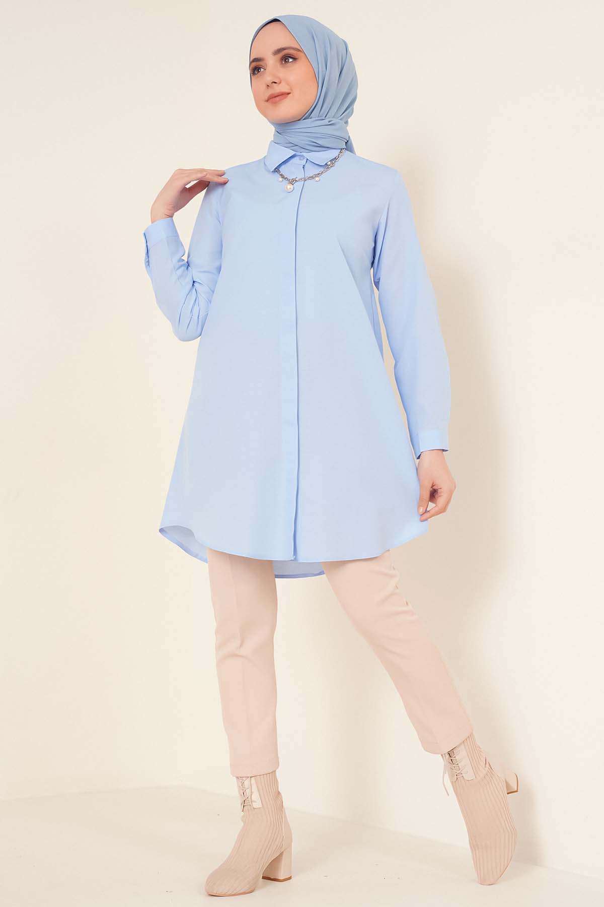 Klasik yakalı mavi gömlek yeni sezon modeldir. Boydan aktif kullanmaya uygun gizli düğmelidir. Manşet kolludur. Etek ucu oval kesime sahiptir. Arkasında bir adet pilesi vardır. Geniş renk skalasıyla her zevke hitap edecek gömlek sizlerle...