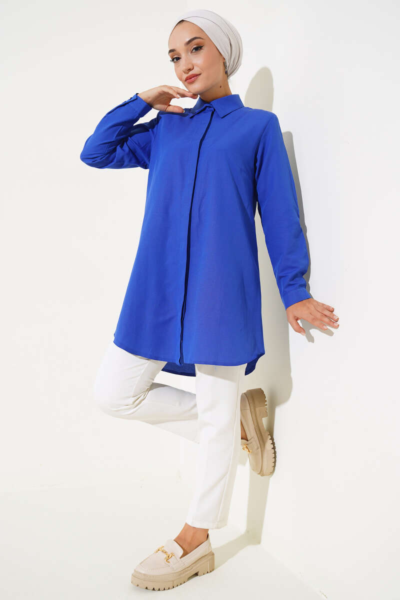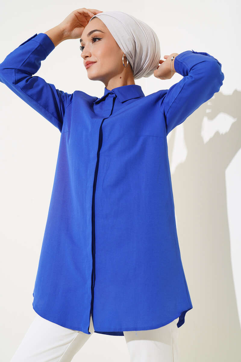 Klasik yakalı saks gömlek yeni sezon modeldir. Boydan aktif kullanmaya uygun gizli düğmelidir. Manşet kolludur. Etek ucu oval kesime sahiptir. Arkasında bir adet pilesi vardır. Geniş renk skalasıyla her zevke hitap edecek gömlek sizlerle...
