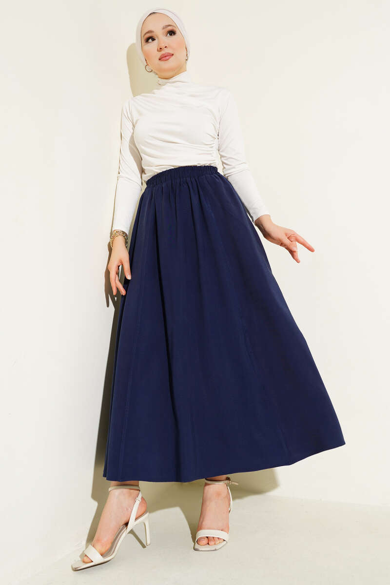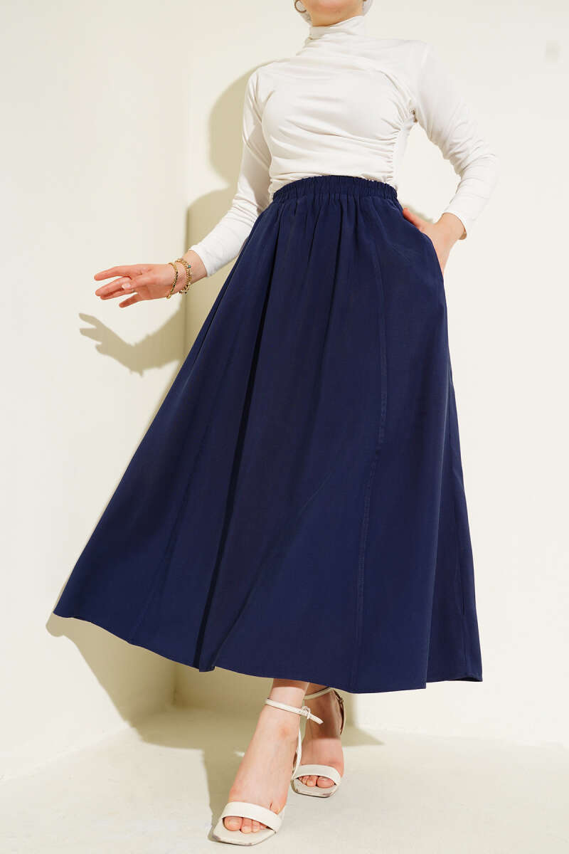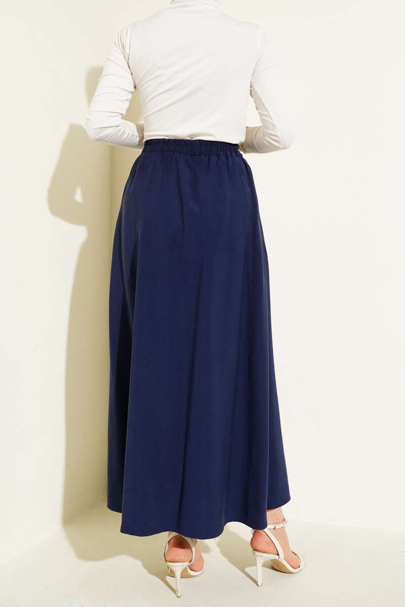 Ekose Desenli Kloş Kaşe Etek Gece Mavisi