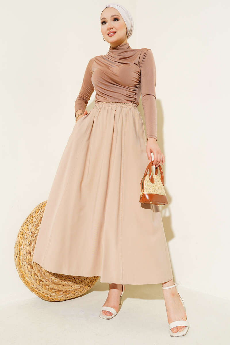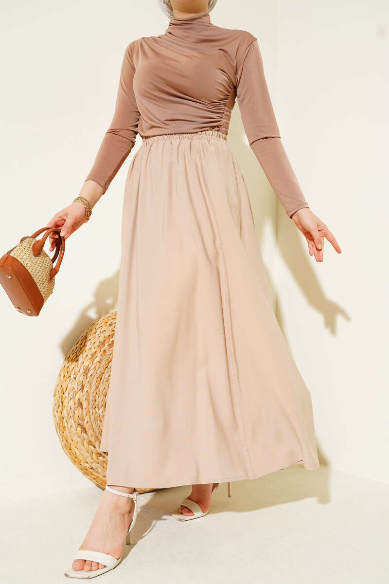 Bel Lastikli Tensel Etek Bej