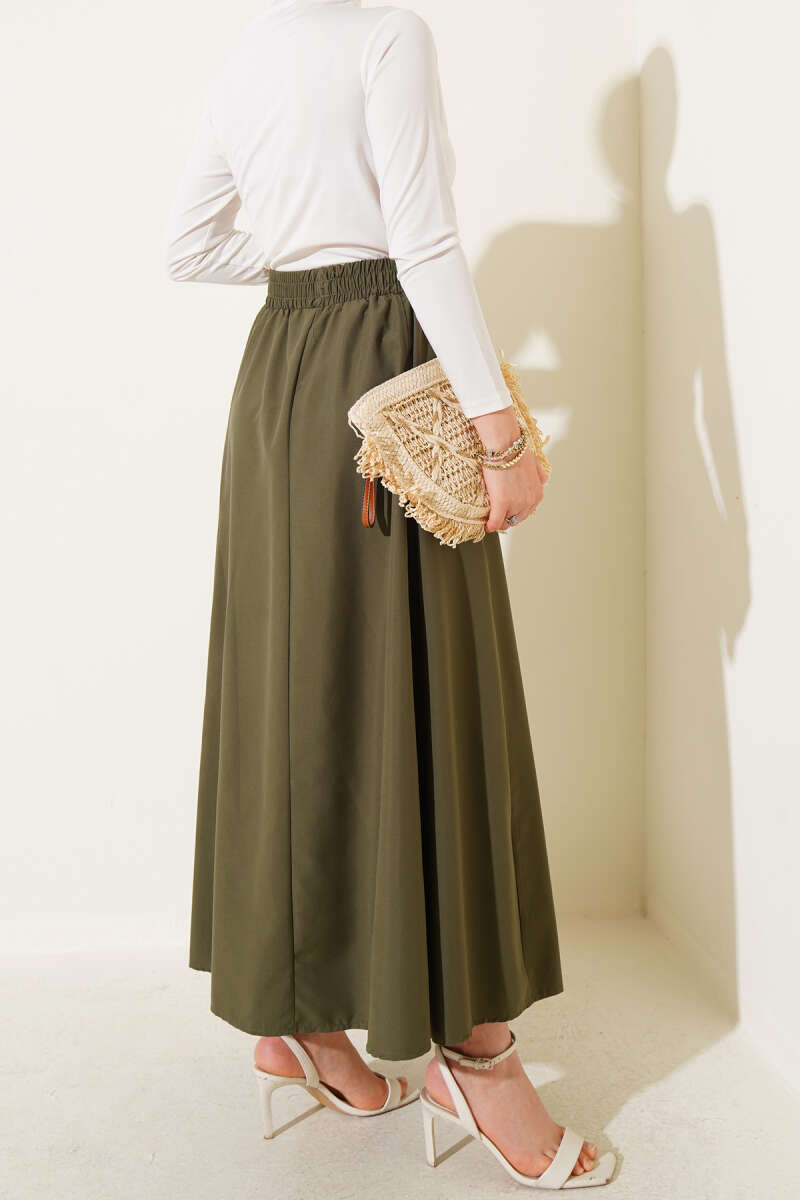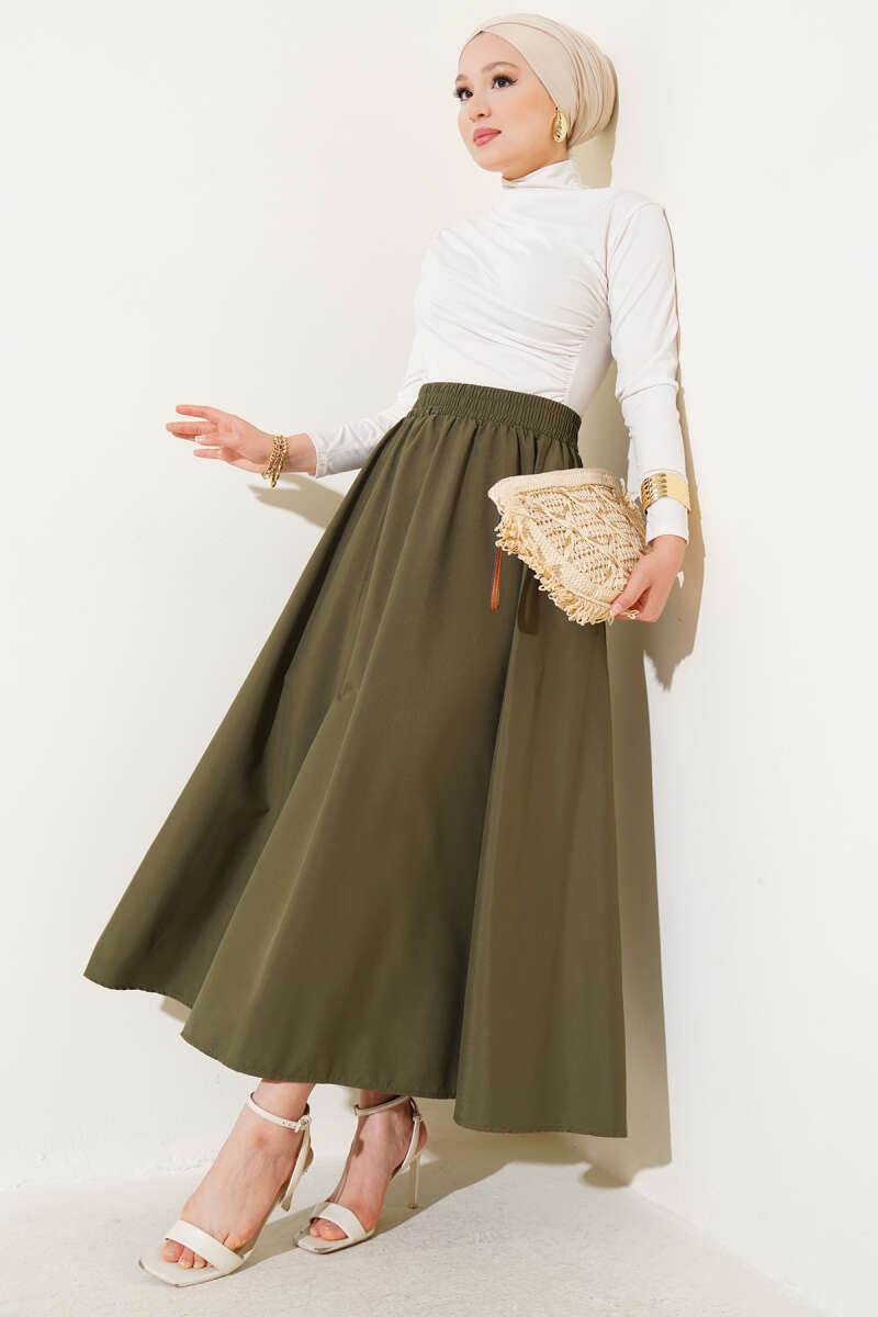 Ekose Desenli Kloş Kaşe Etek Kırmızı