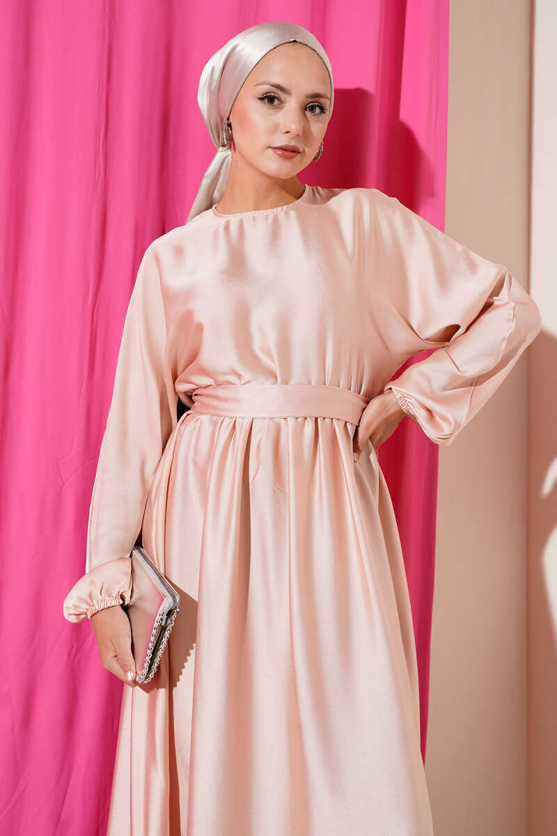 Kuşaklı Ekose Desenli Kloş Elbise Haki