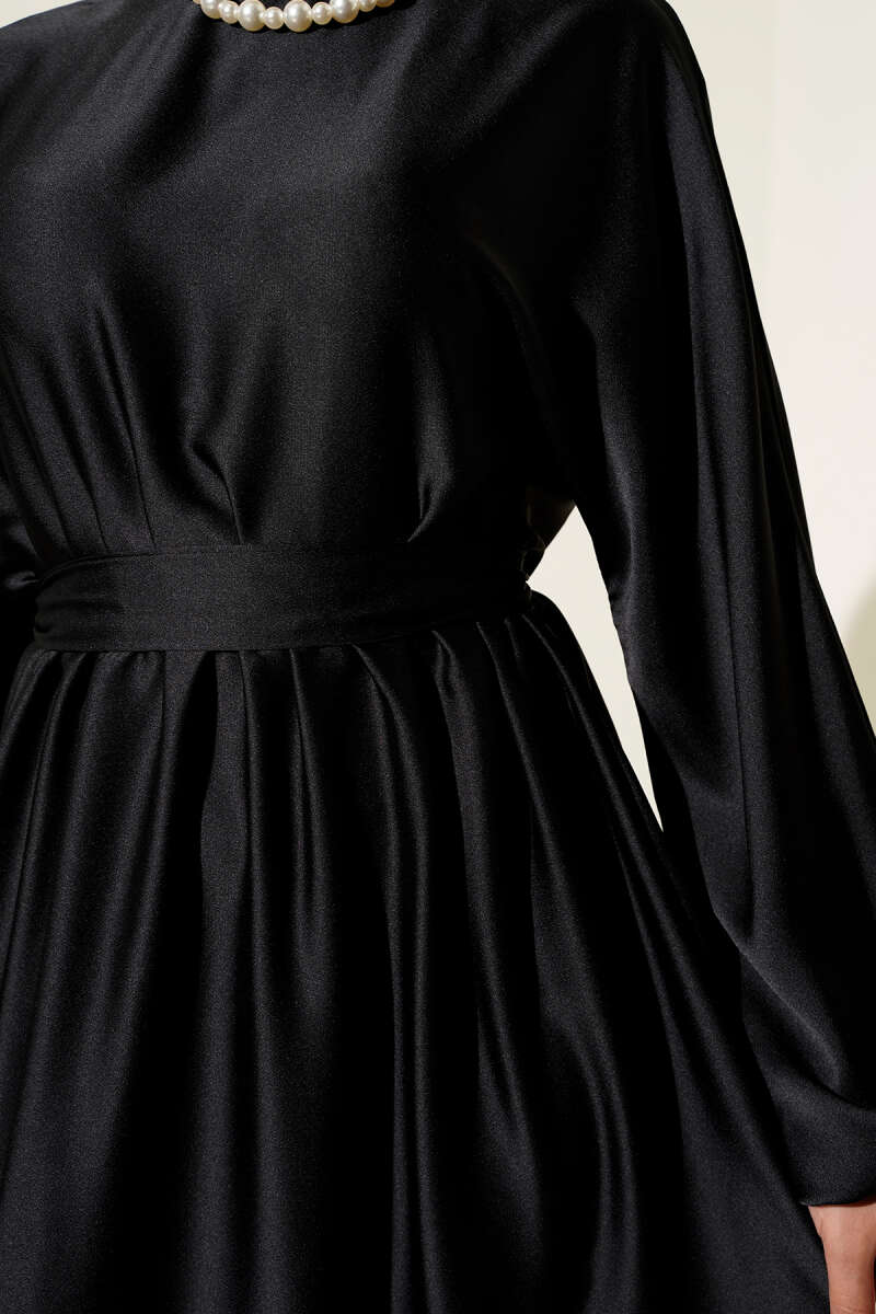 Ekoseli İp Kuşaklı Elbise Siyah