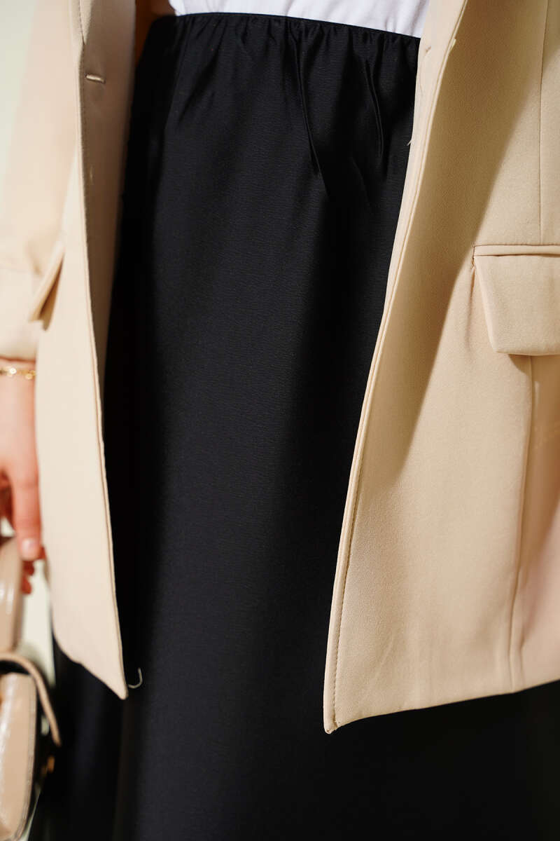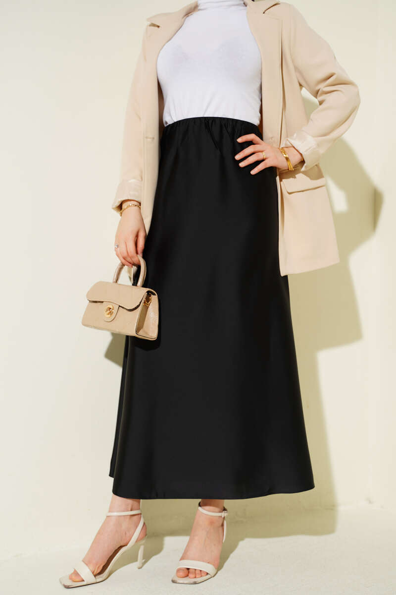 Kloş Beli Lastikli Saten Etek Siyah