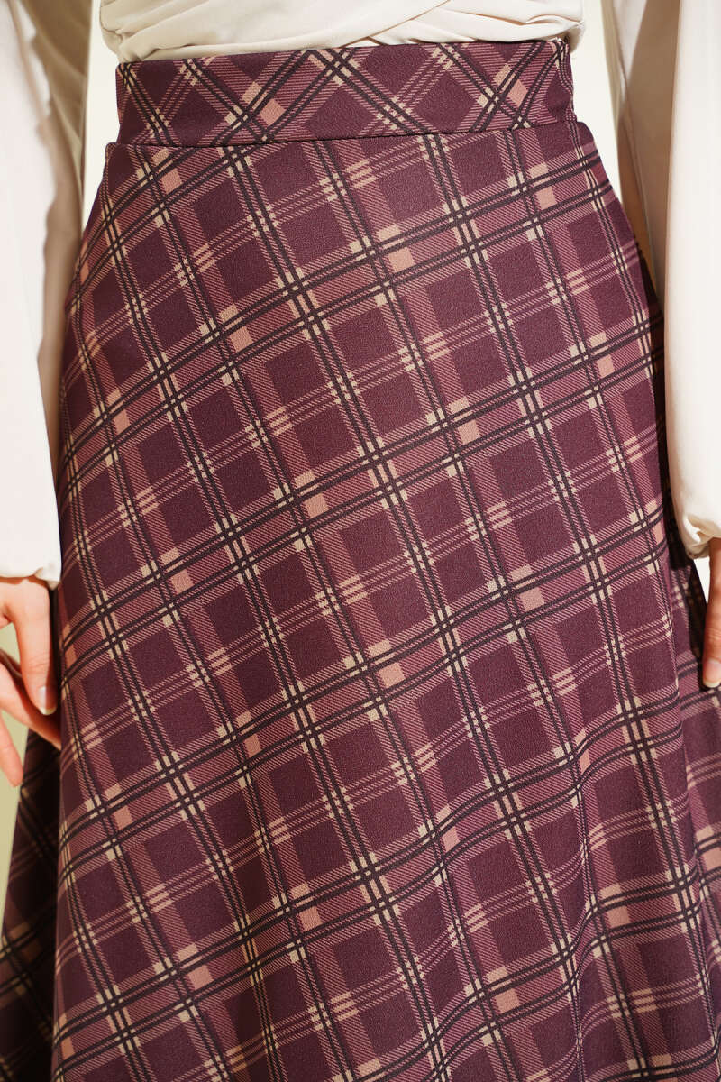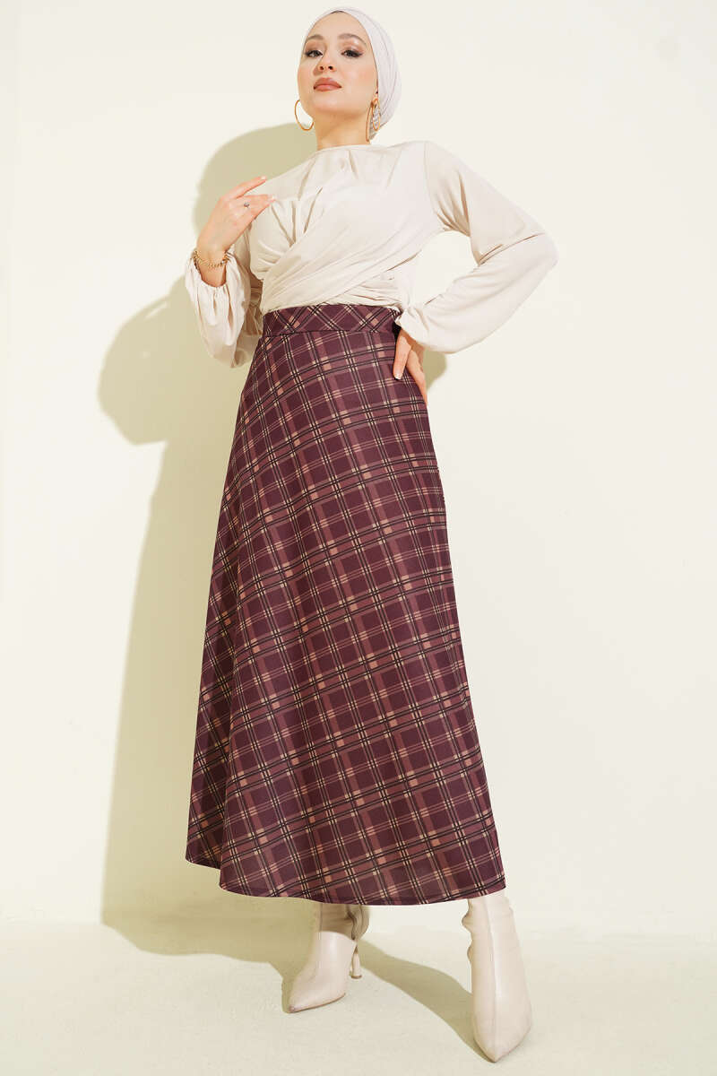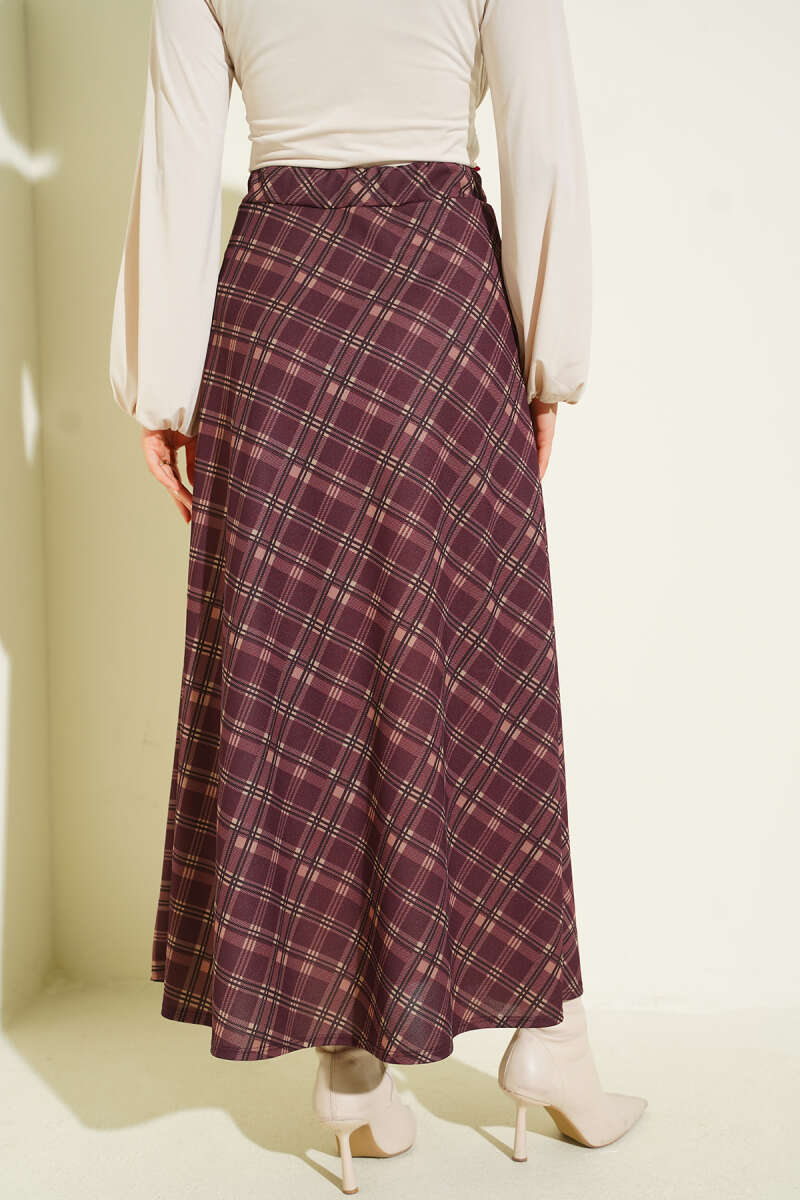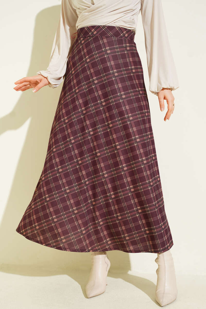 Ekose Desenli Kloş Dabıl Etek Acı Kahve