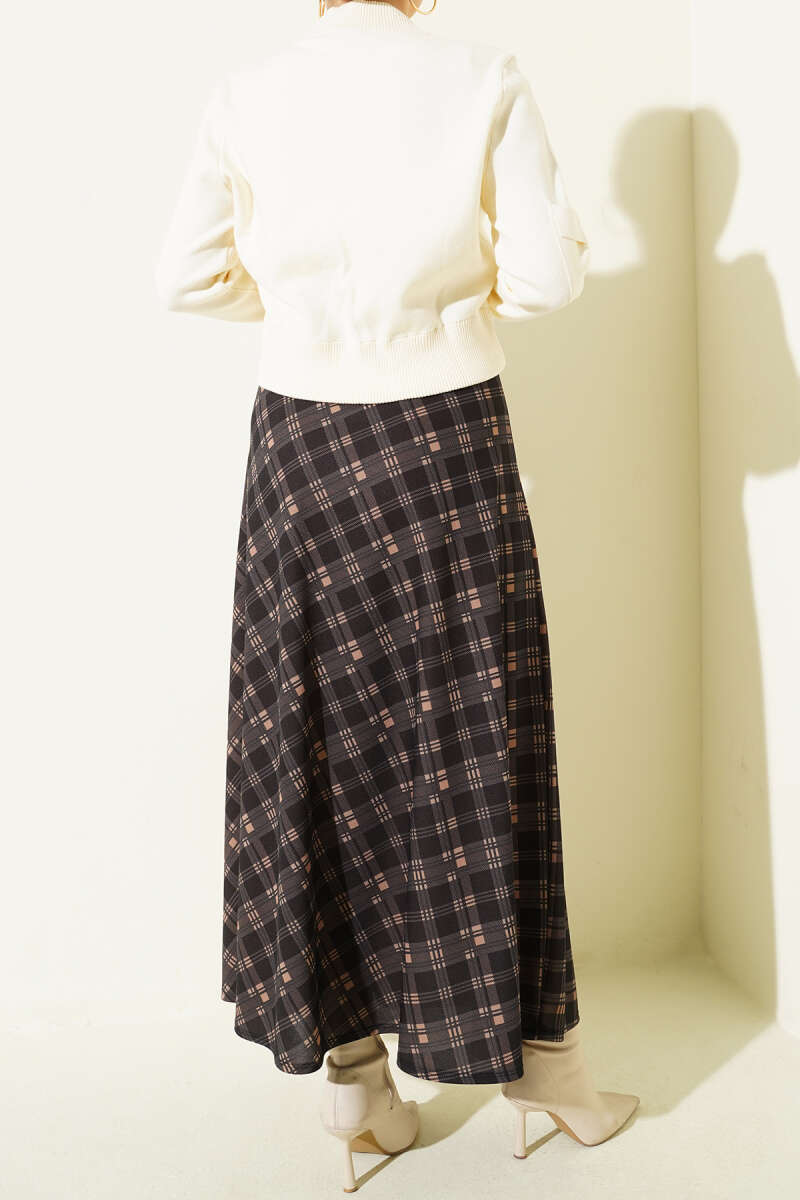 Ekose Desenli Kloş Dabıl Etek Acı Kahve
