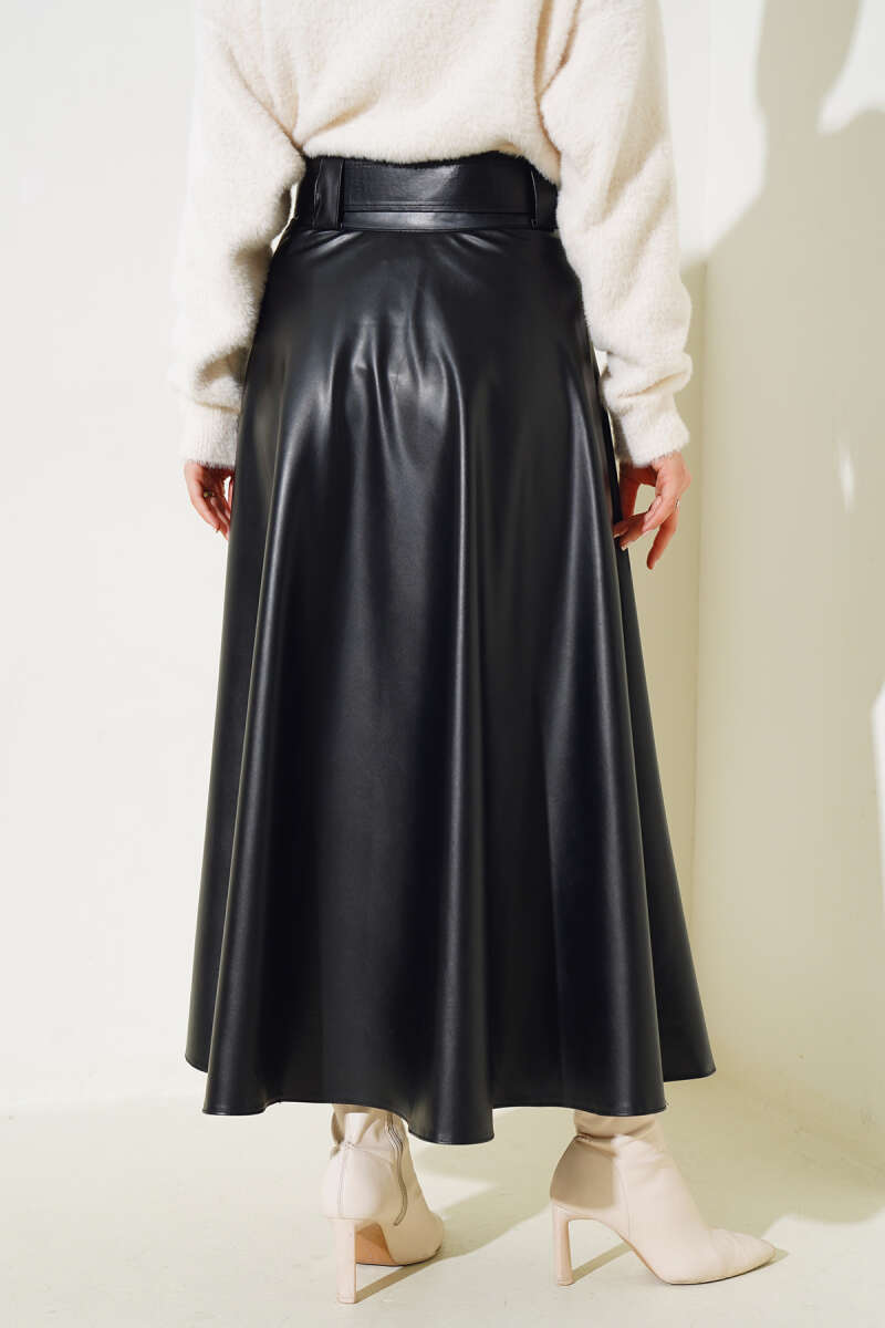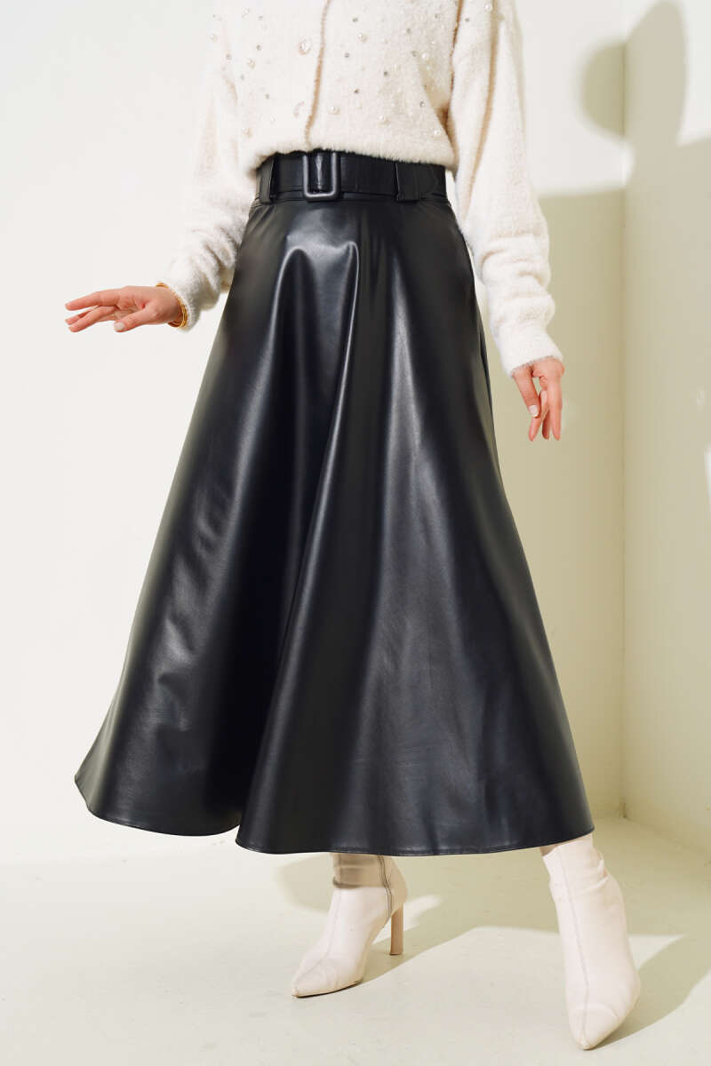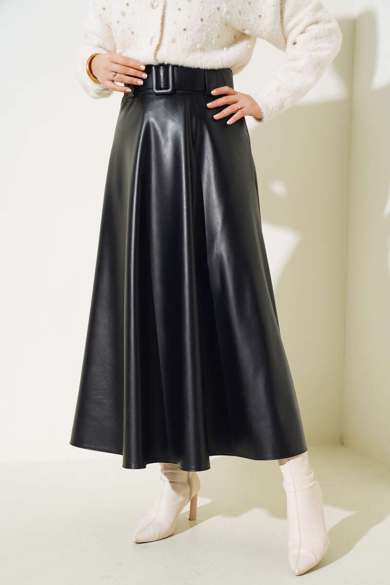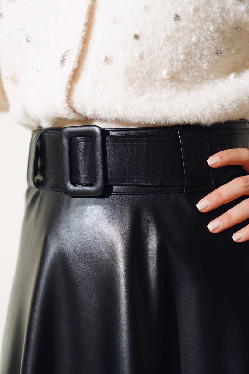 Kemer Aksesuarlı Ekoseli Etek Bordo