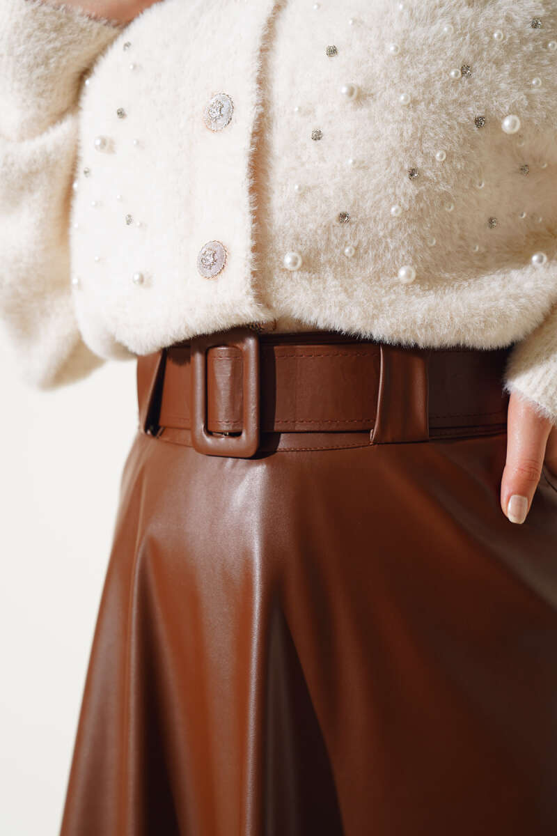 Dikişli Fitilli Kaşe Etek Bej