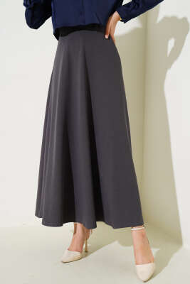 Kemer Aksesuarlı Ekoseli Etek Füme