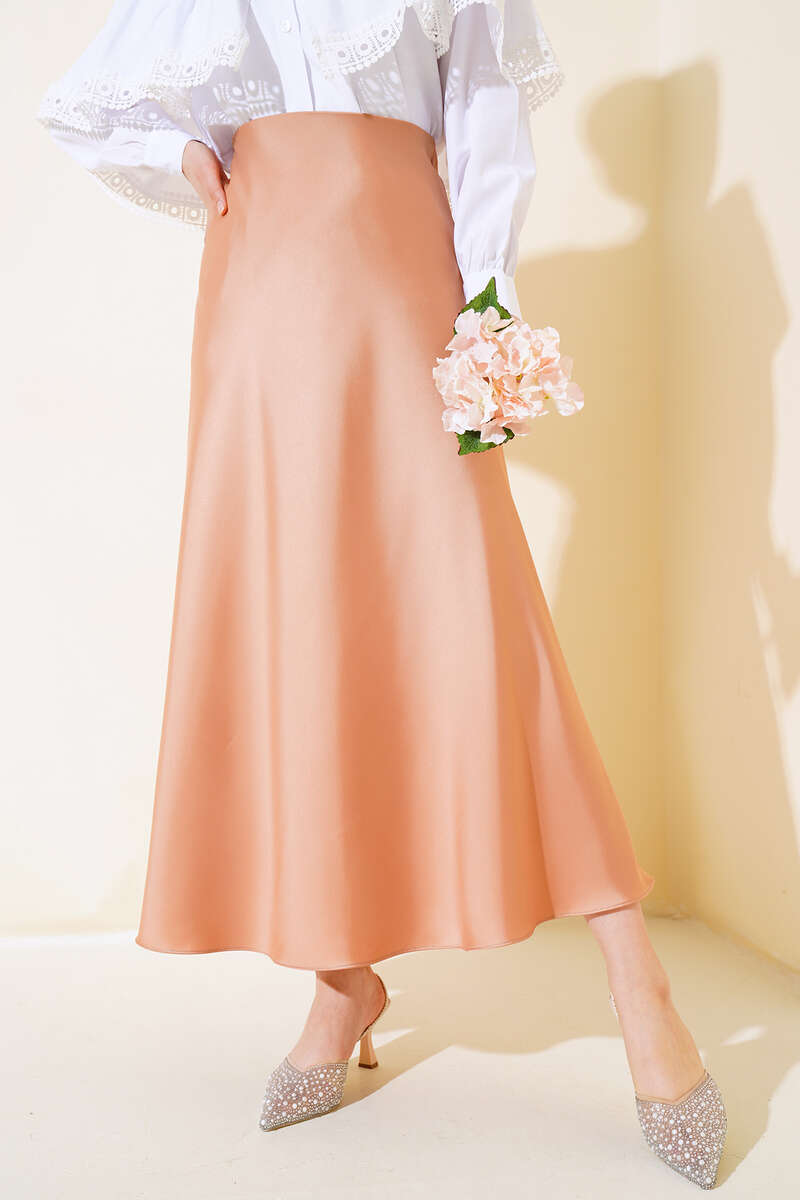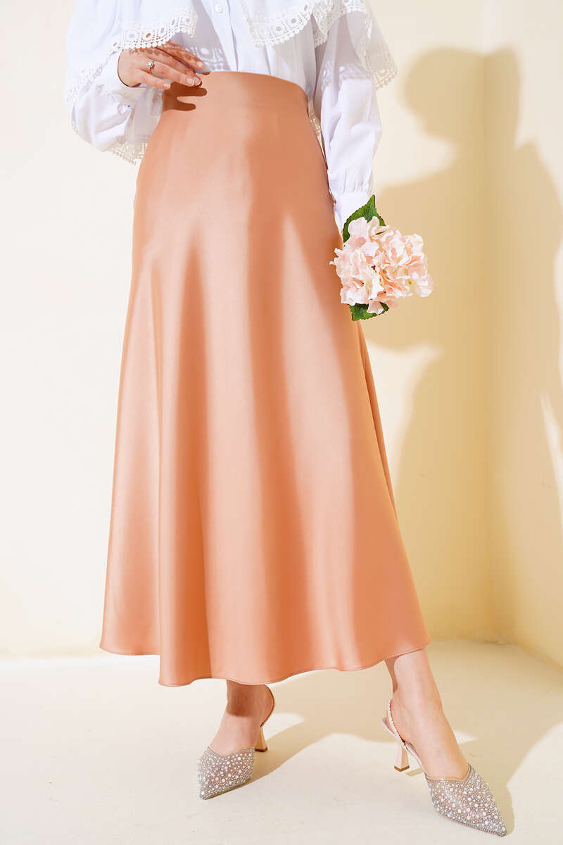 Sezonun yeni etek modelinizi çok beğeneceksiniz. Saten kumaştır. Uzun boy etek modelimiz kloş modeldir. Beli lastiklidir. Yandan fermuarladır.