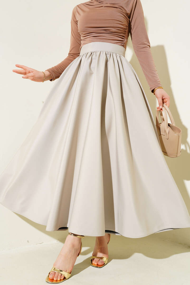 Kemer Aksesuarlı Ekoseli Etek Haki