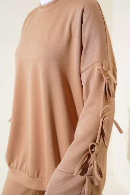 Bel Lastikli Çımalı Scuba Pantolon Bej