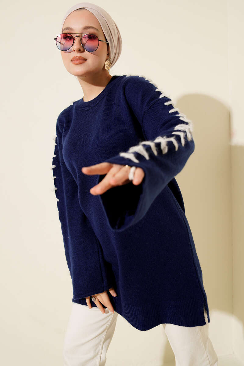 Kol Bağcık Detaylı Triko Tunik Bordo