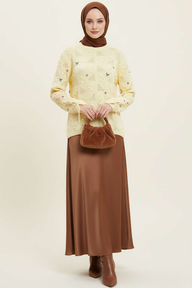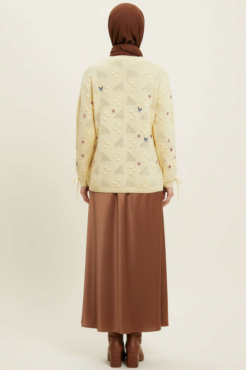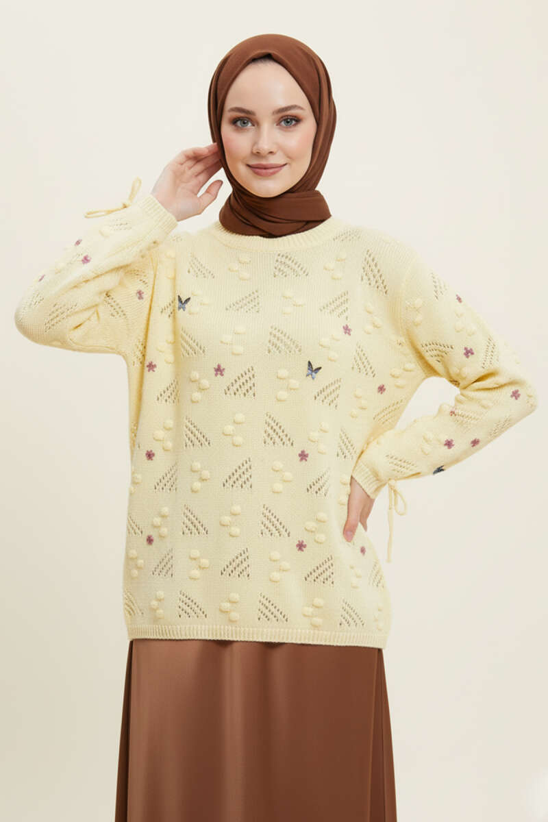 Örgü Yandan Bağlamalı Triko Süveter Çağla Yeşili