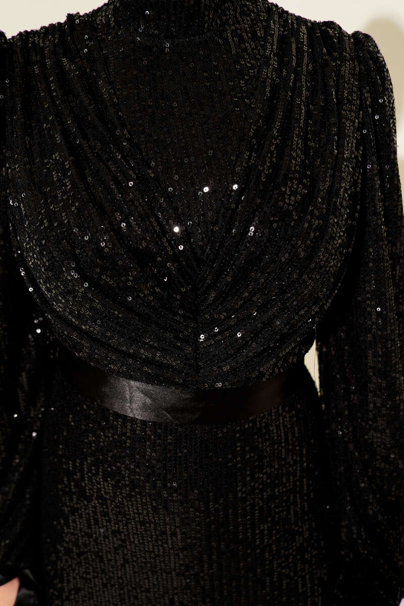 Kol Bağcıklı Pul Payet Abiye Elbise Lacivert