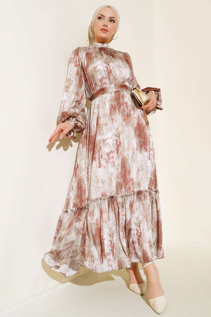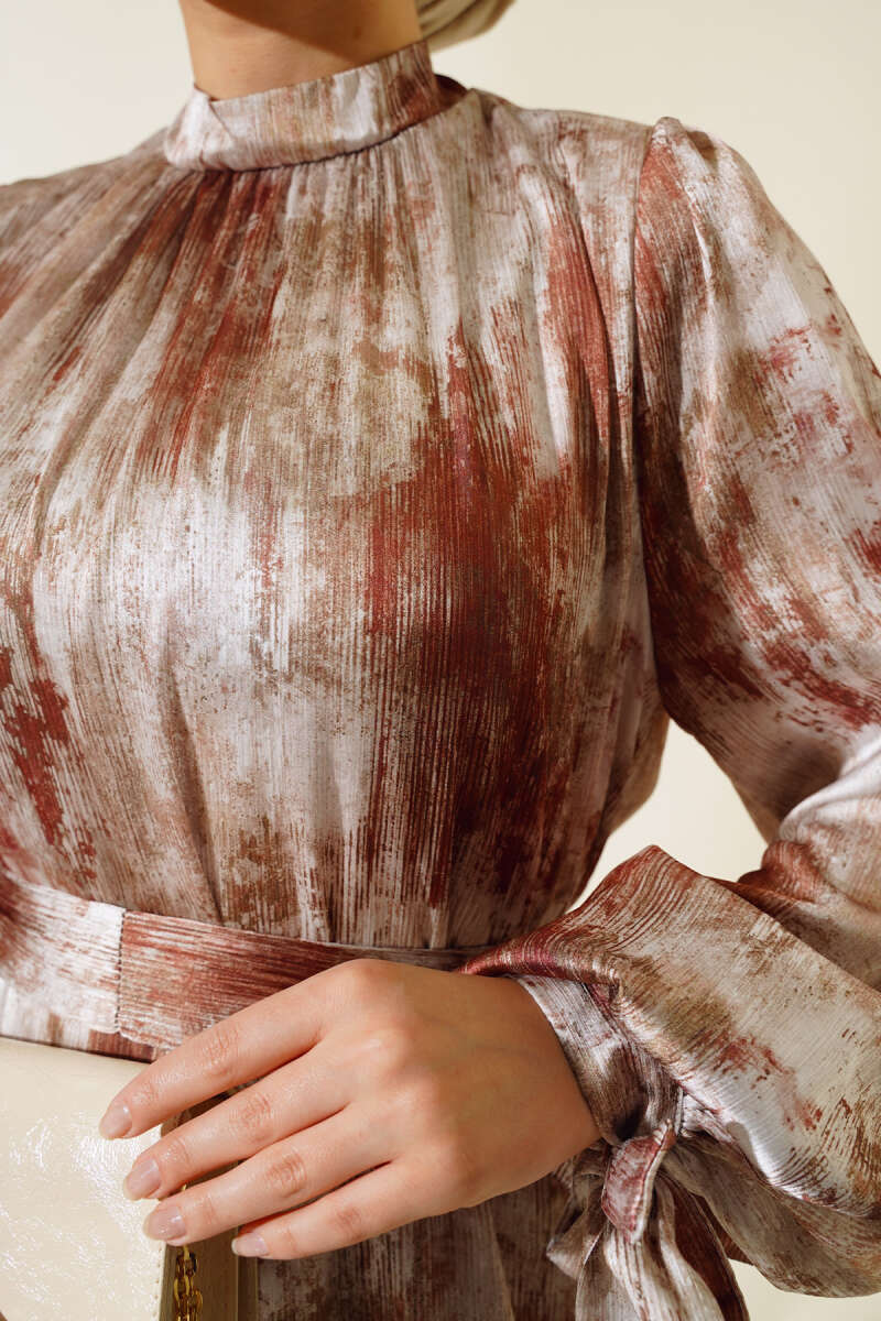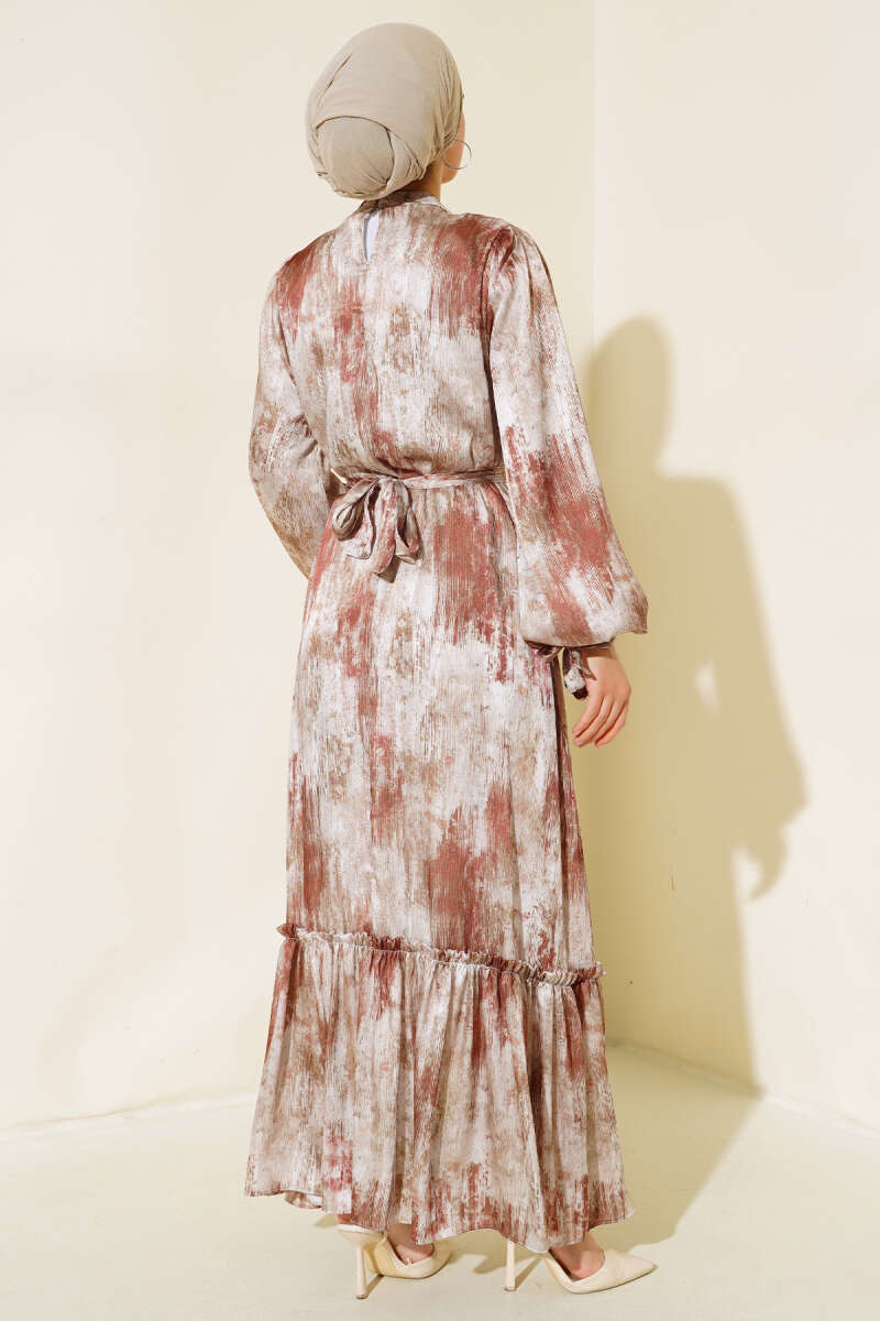 Boydan Düğmeli Kemerli Tensel Elbise Latte