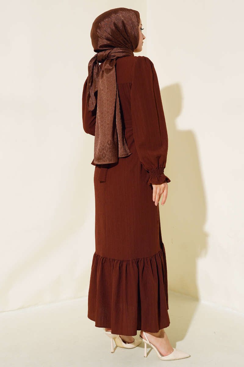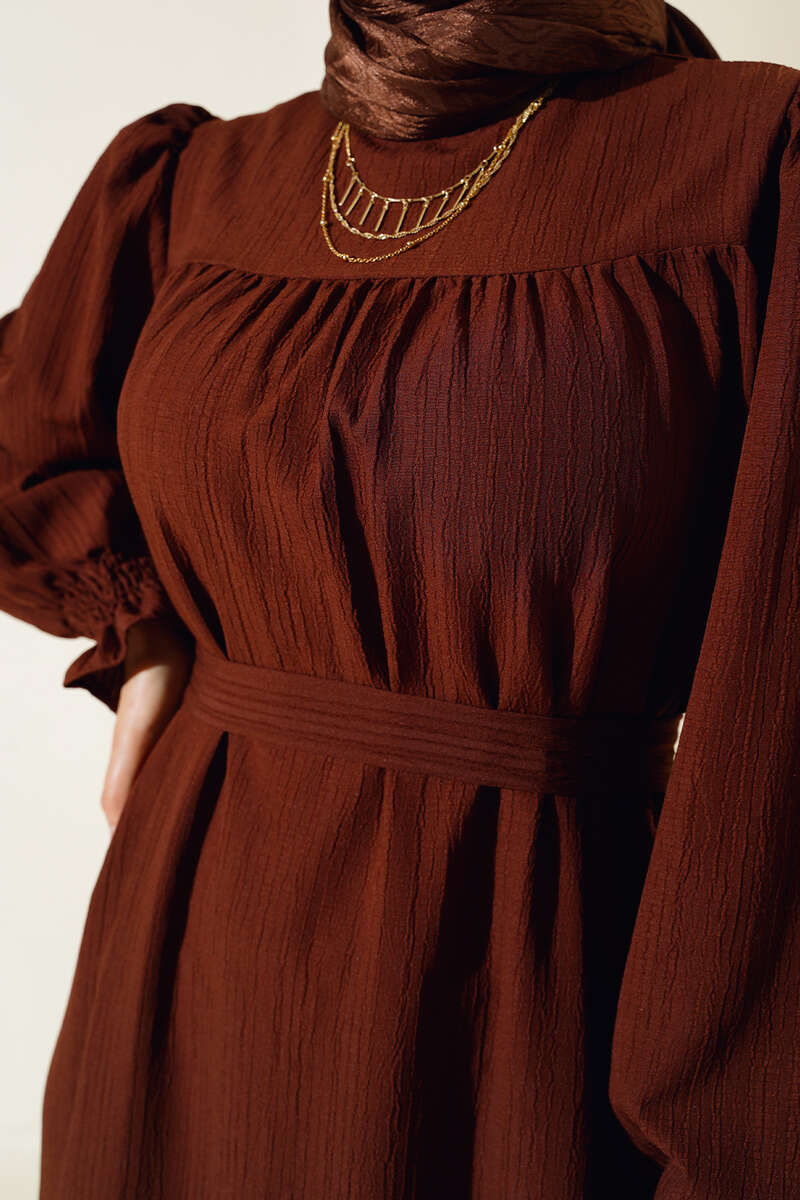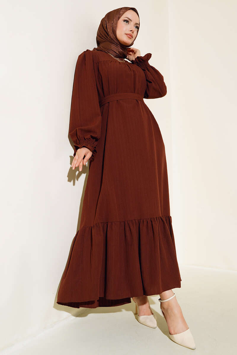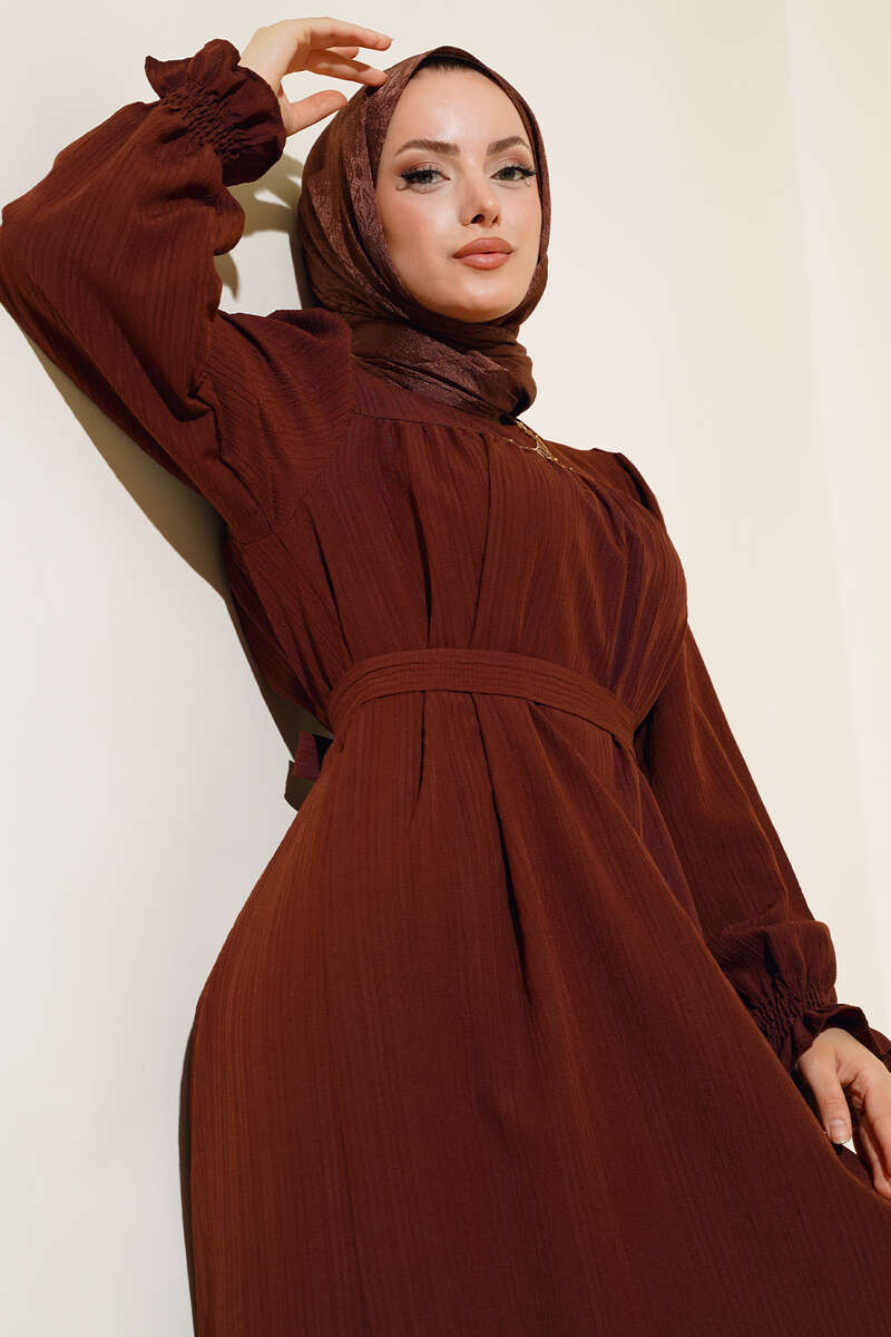 Yeni sezon elbise modelimiz sizlerle beraber. Elbisemizin kol bilekleri gipelidir. Oval yakadır. Enseden düğmelidir. Kat modeldir. Elbisemiz kloş modeldir. Astarsızdır. Kendi kumaşından kuşağı vardır. Renk seçenekleri olan elbise modelimiz dolabınızda yerini beklemektedir.