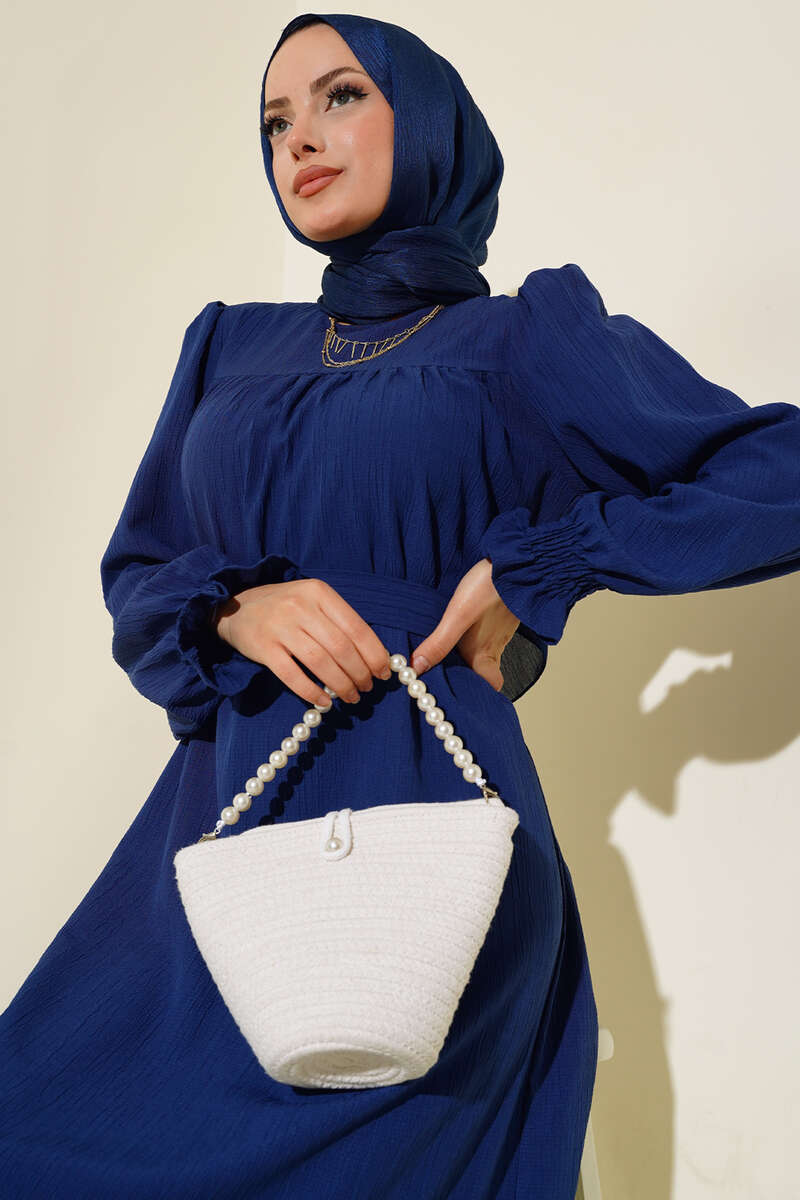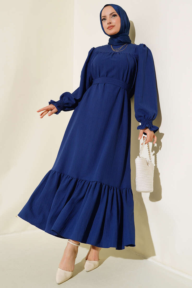 Yeni sezon elbise modelimiz sizlerle beraber. Elbisemizin kol bilekleri gipelidir. Oval yakadır. Enseden düğmelidir. Kat modeldir. Elbisemiz kloş modeldir. Astarsızdır. Kendi kumaşından kuşağı vardır. Renk seçenekleri olan elbise modelimiz dolabınızda yerini beklemektedir.