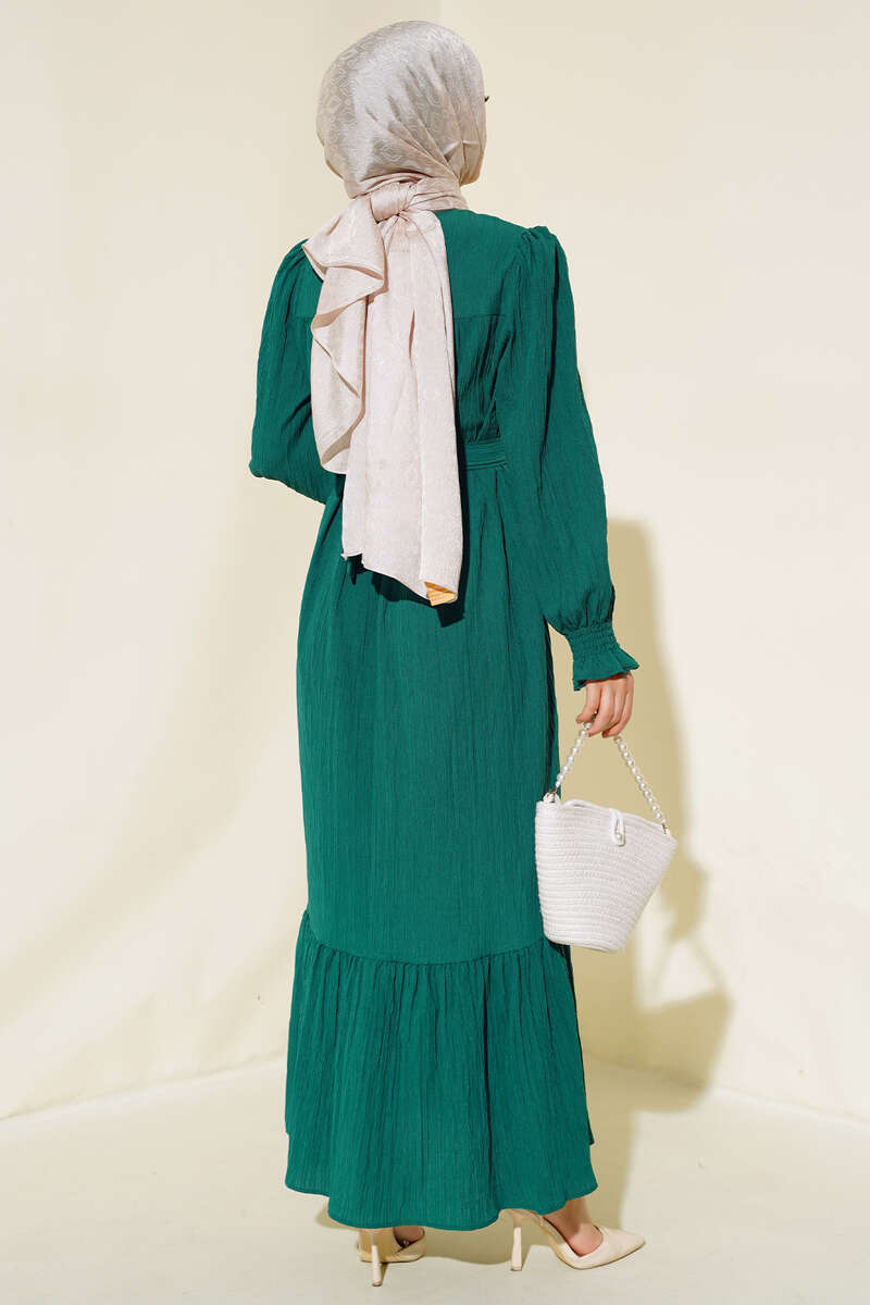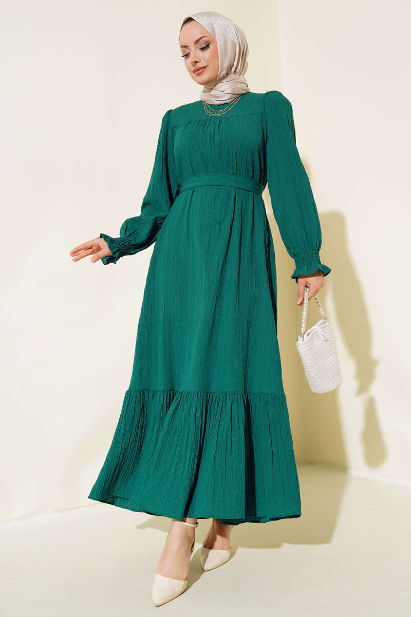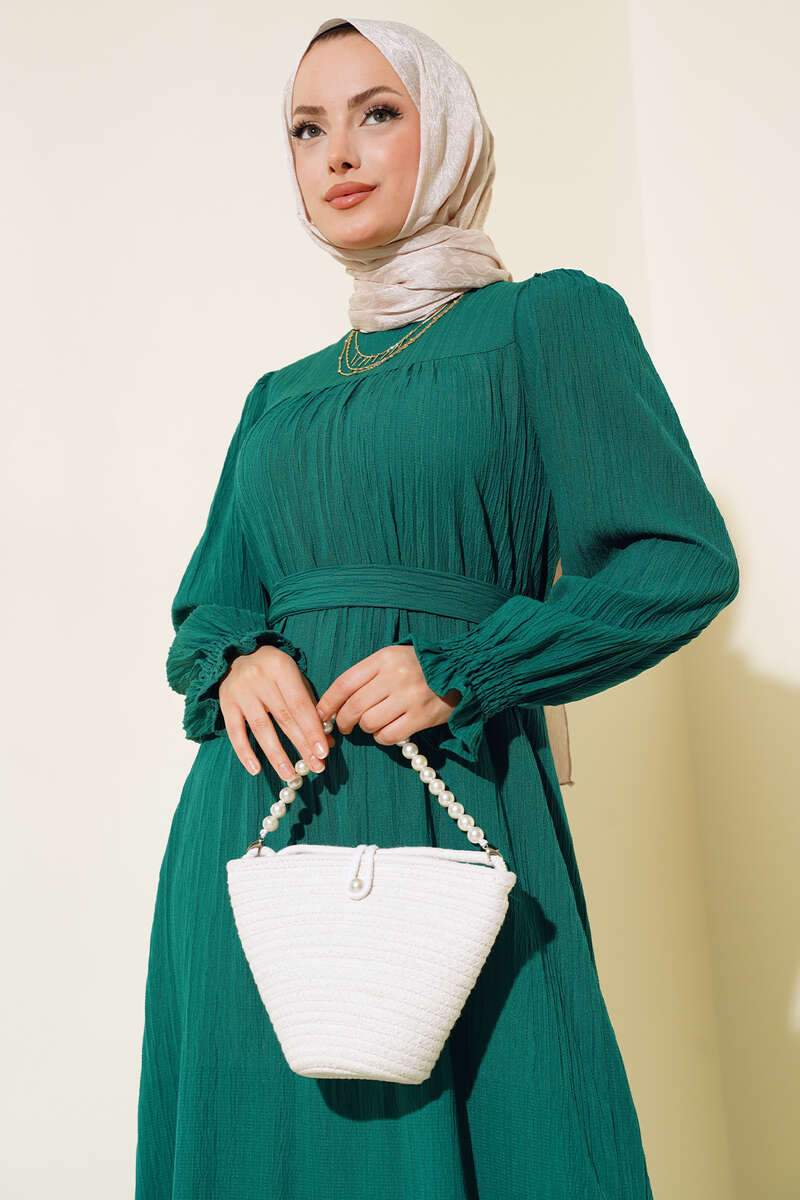 Yeni sezon elbise modelimiz sizlerle beraber. Elbisemizin kol bilekleri gipelidir. Oval yakadır. Enseden düğmelidir. Kat modeldir. Elbisemiz kloş modeldir. Astarsızdır. Kendi kumaşından kuşağı vardır. Renk seçenekleri olan elbise modelimiz dolabınızda yerini beklemektedir.