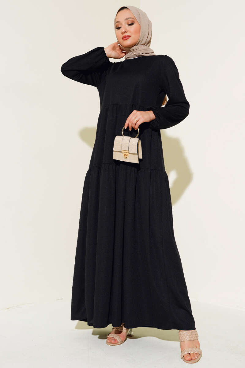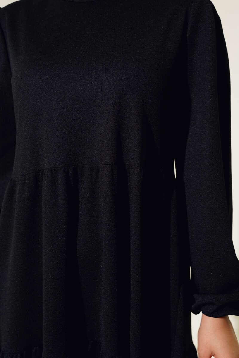 Pelerin Detaylı Pileli Triko Elbise Siyah