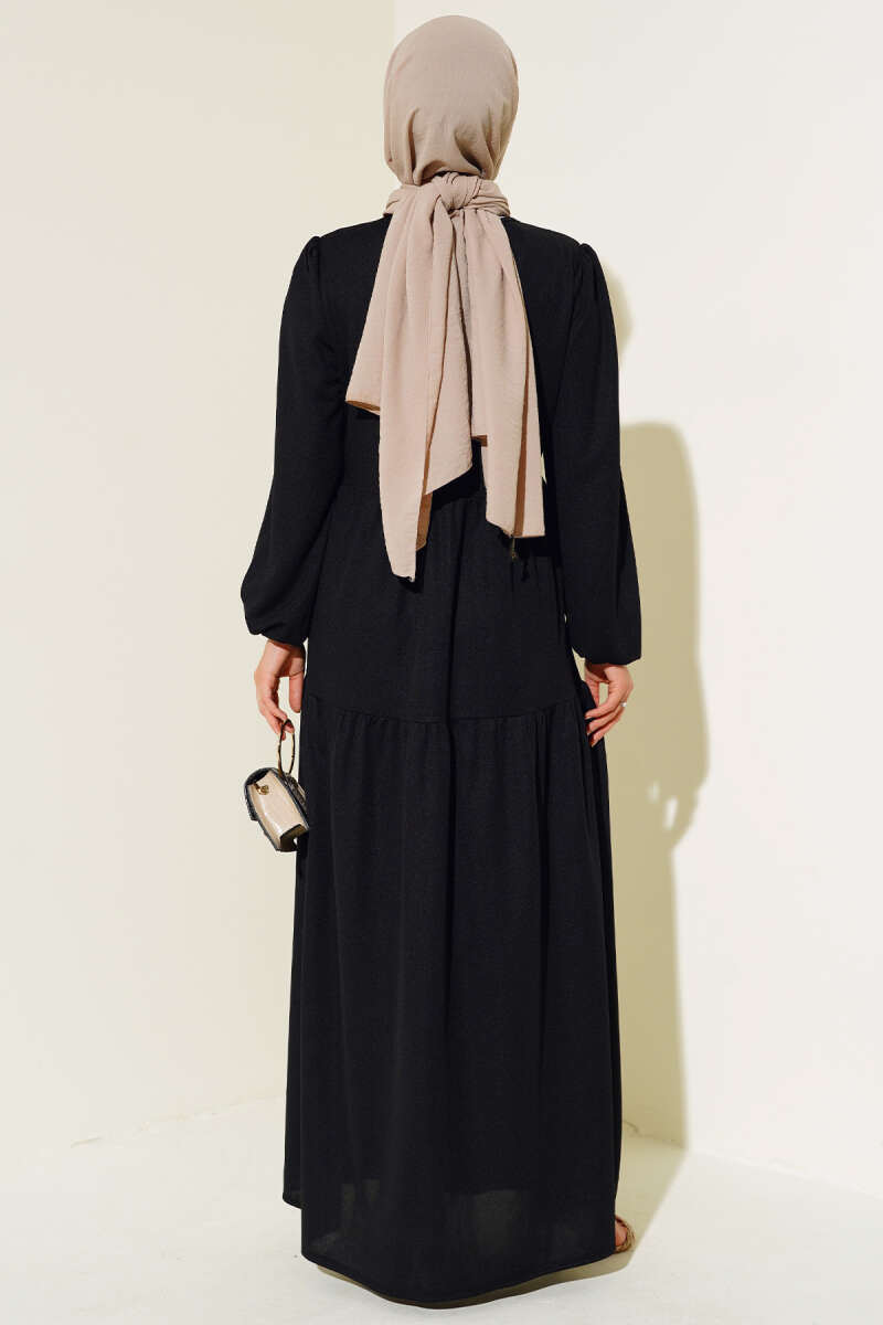 Bel Büzgü Detaylı Abiye Elbise Siyah