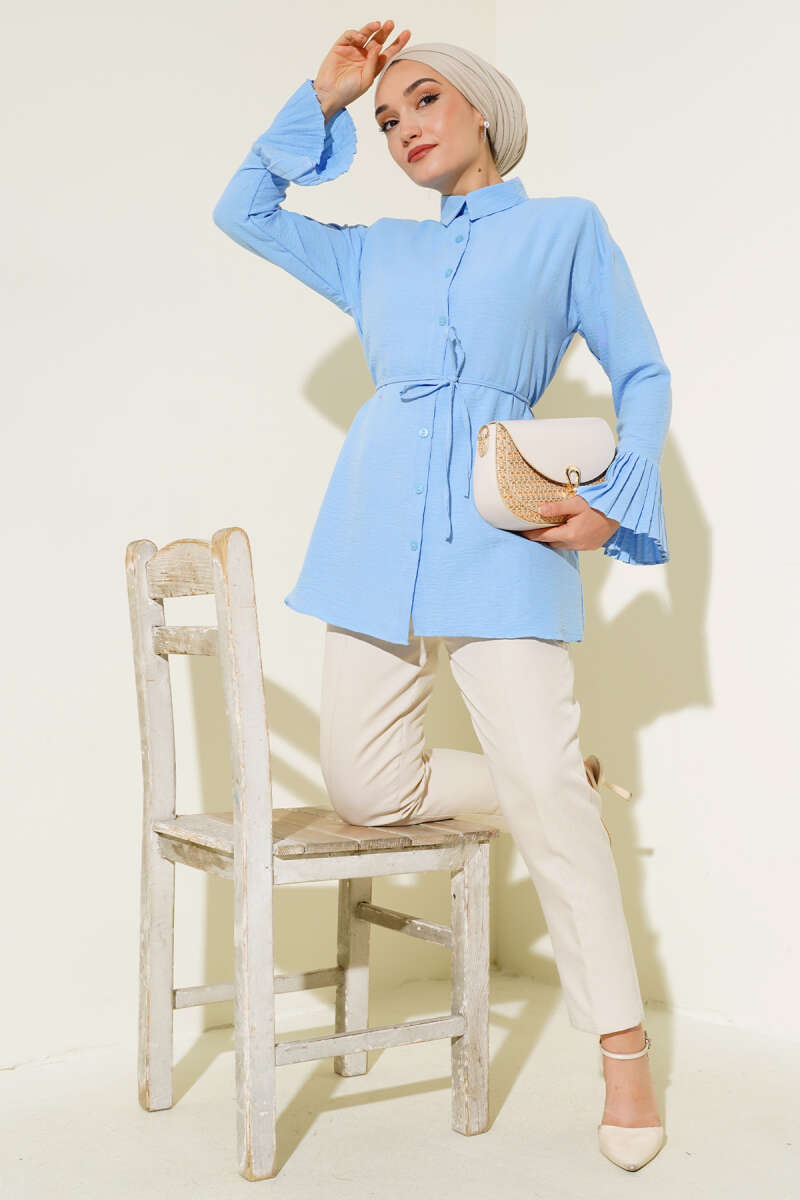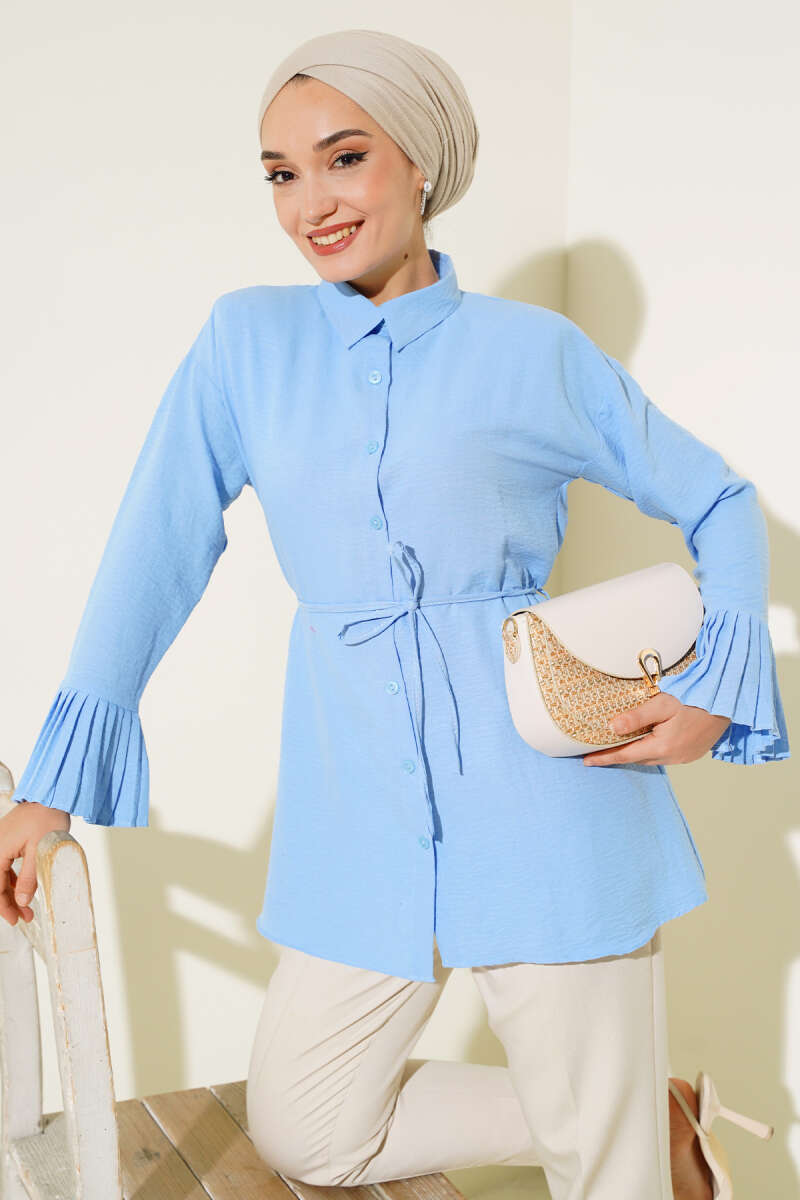 Kol Bileği Pileli Gömlek Kahve