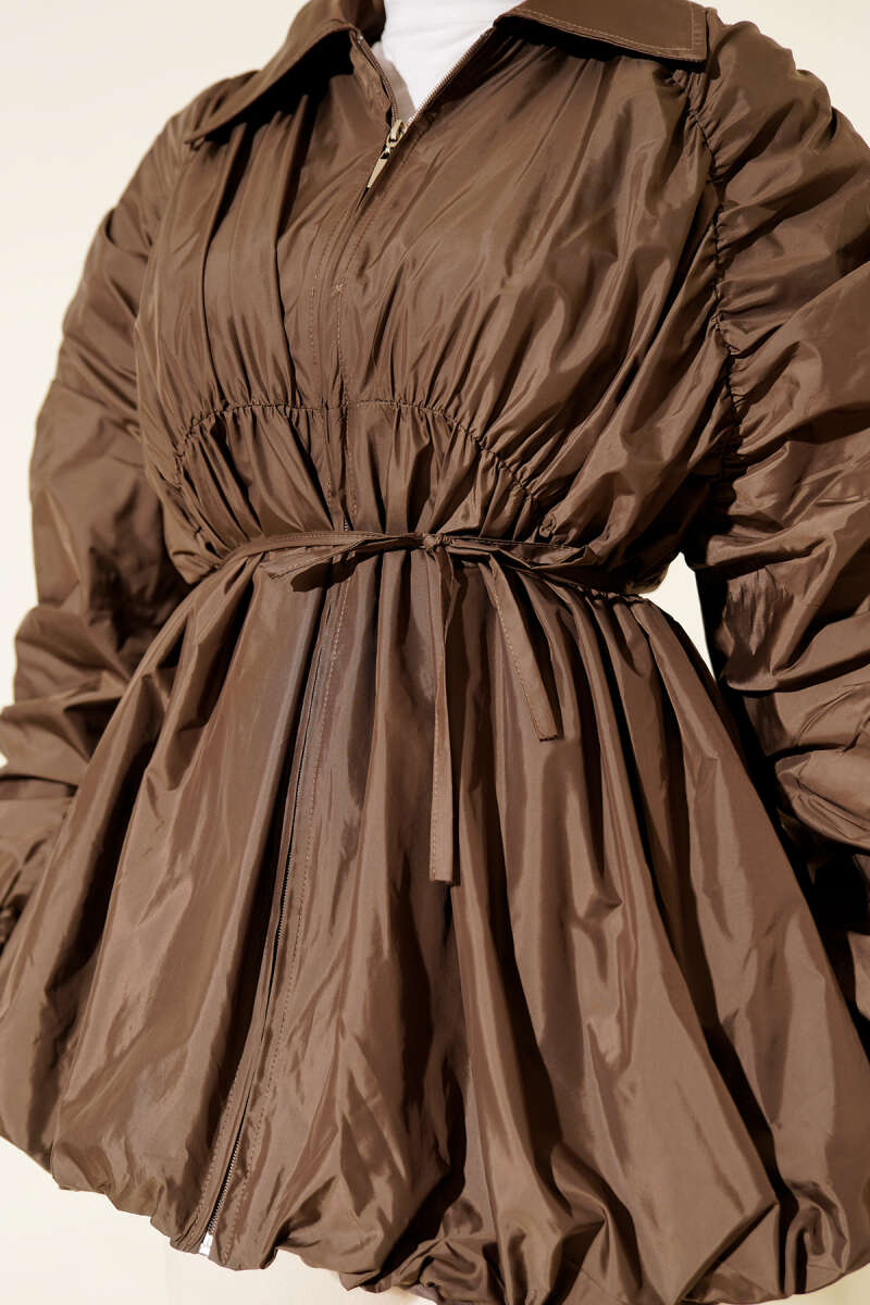 Pelerin Detaylı Apoletli Trençkot Kahve