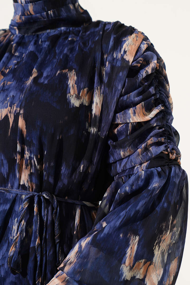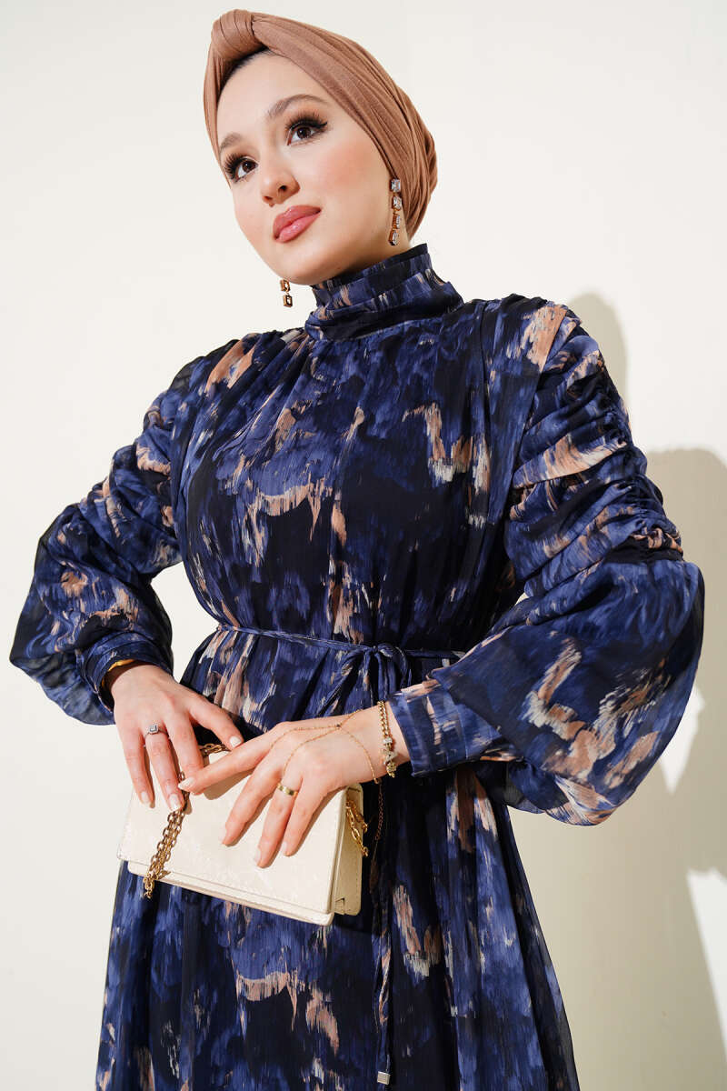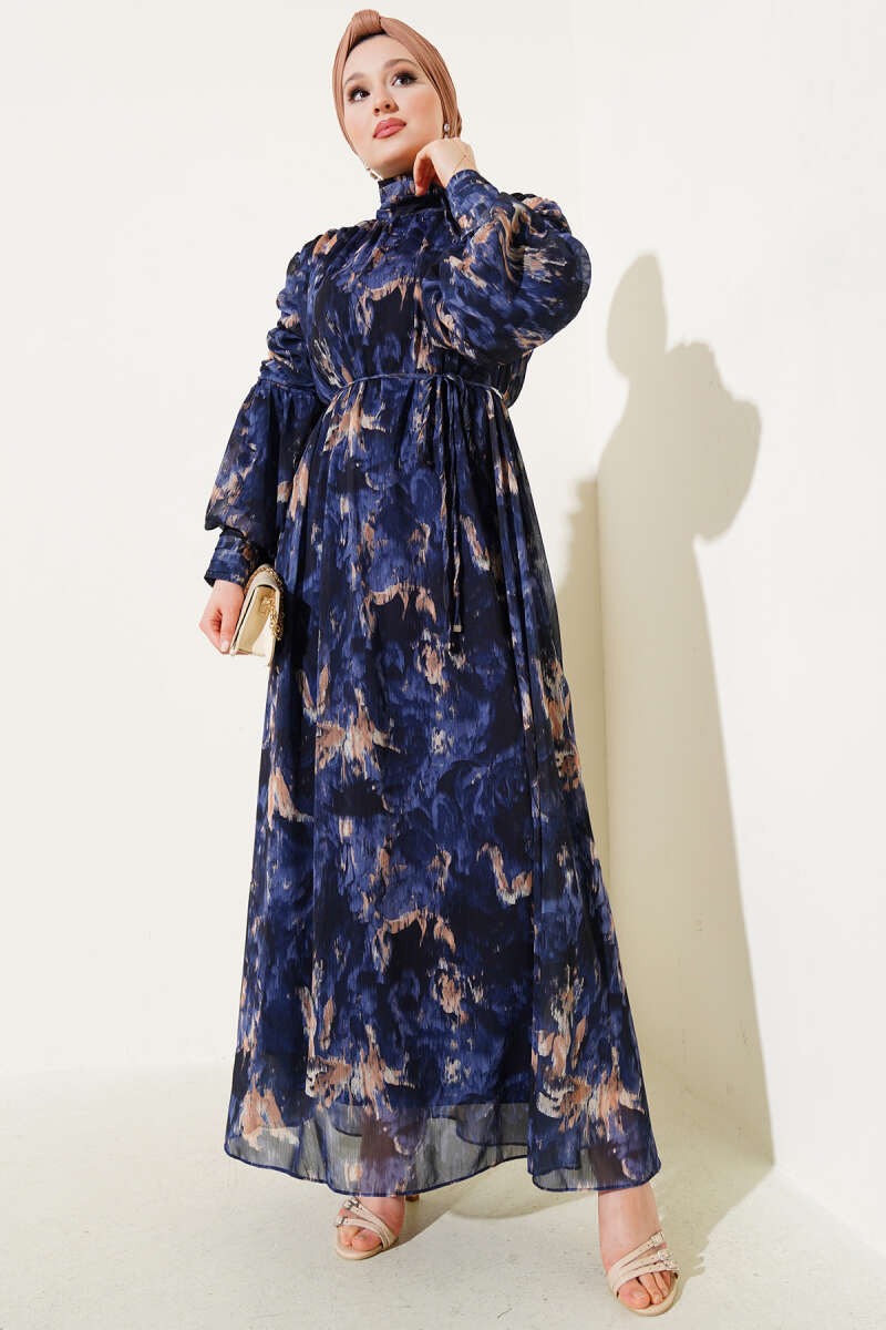 İnce Çizgili Boydan Düğmeli Elbise Lacivert