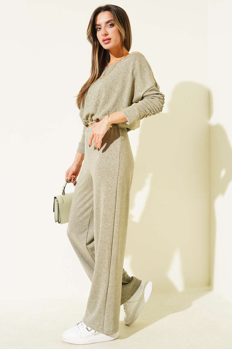 Biyeli Fermuarlı Loyşa İkili Takım Ekru