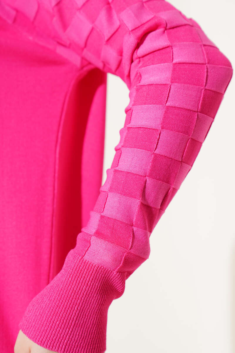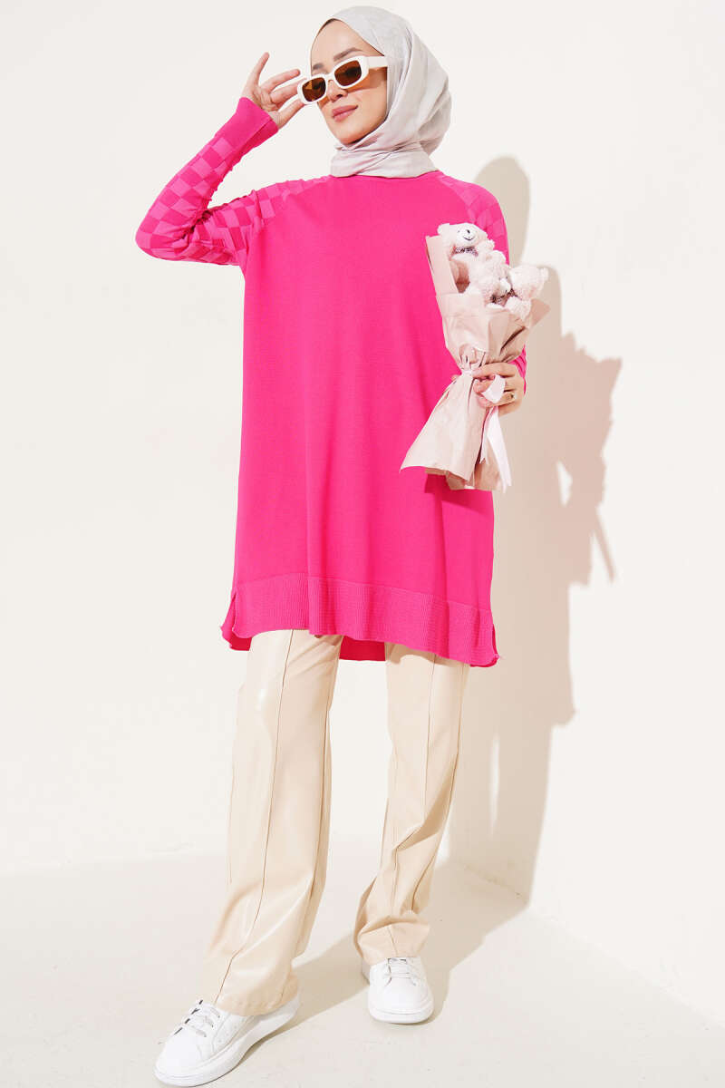 Düşük Omuz Salaş Triko Tunik Magenta