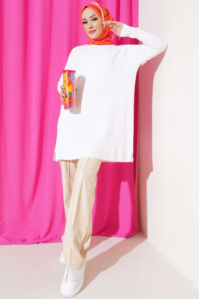 Balıkçı Yaka Balon Kol Triko Tunik Latte