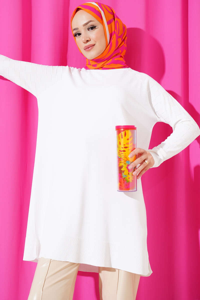Balıkçı Yaka Balon Kol Triko Tunik Nefti