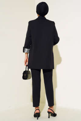 Karışık Desenli Fermuarlı İkili Takım Siyah