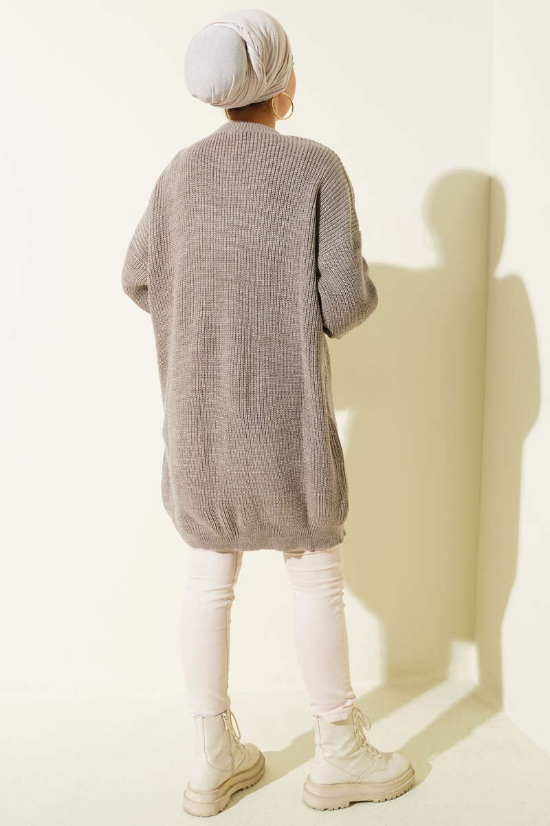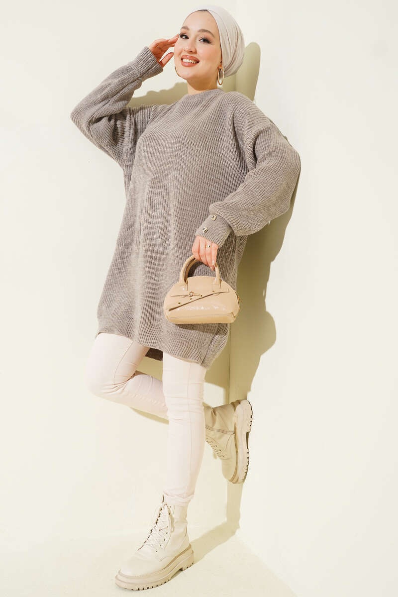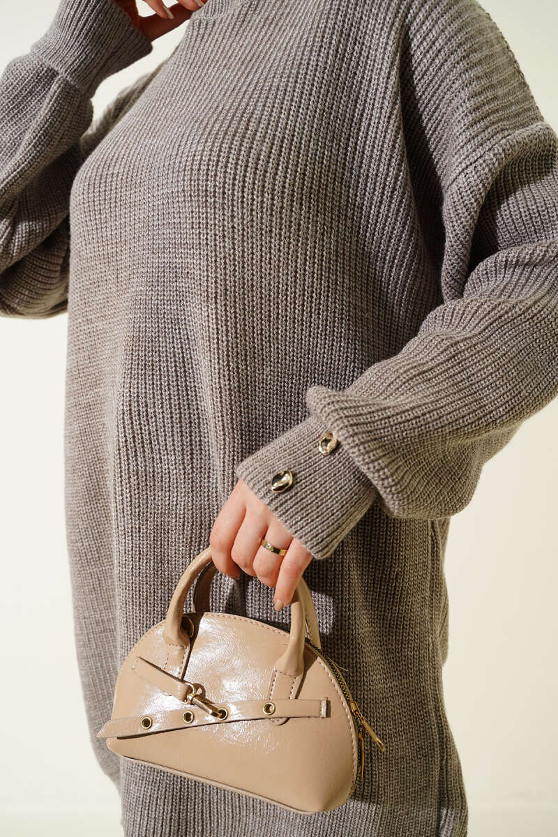 Kol Düğme Detaylı Triko Tunik Bronz