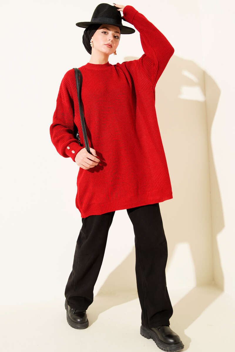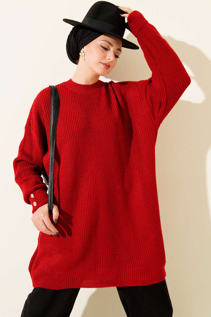Kol Düğme Detaylı Triko Tunik Zümrüt