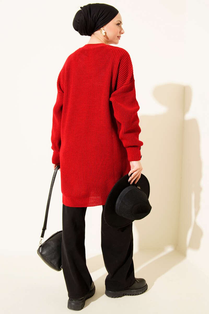 Baklava Kabartma Salaş Triko Tunik Bordo